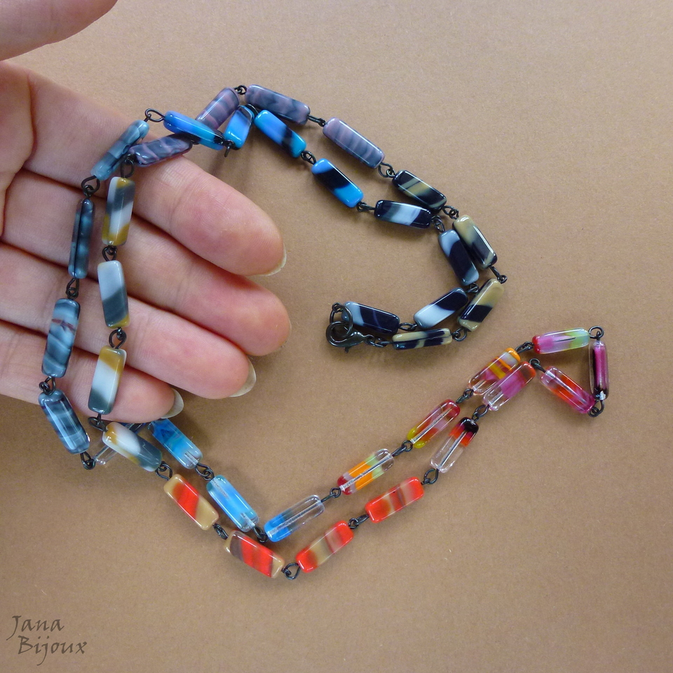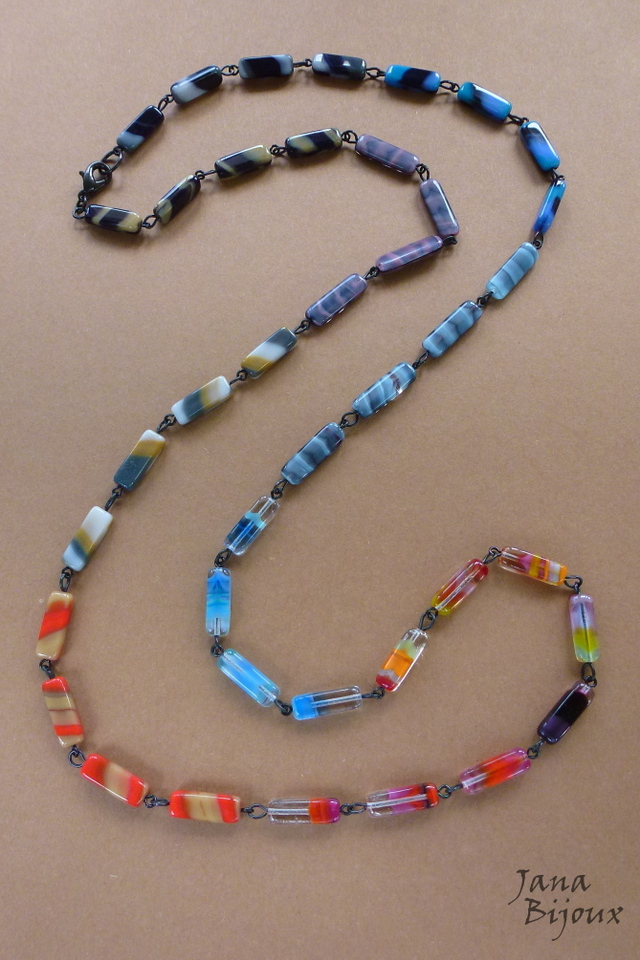 c994 14/01/2015VENDIDOS ( Prodáno)Jana Bijoux MODERNO, URBANO, VIBRANTE Colar comprido 85,5 cm de vidro… montado em degradê assimétrico. Componentes pretos R$ 39,00
