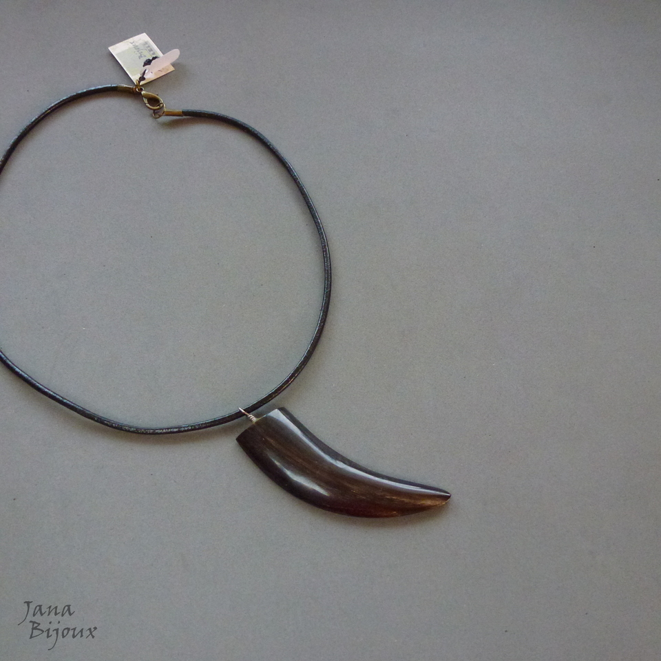 Colar curto 50 cm com couro e dente de chifre 7,5 cm R$ 22,00