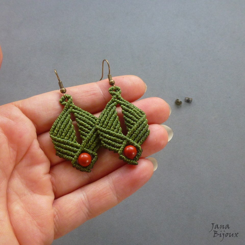 Brincos de cor verde musgo, super leve, minimalista, vai com tudo, anzol sem niquel, comprimento 5,9 cm + pedra natural de jaspe R$ 29,90