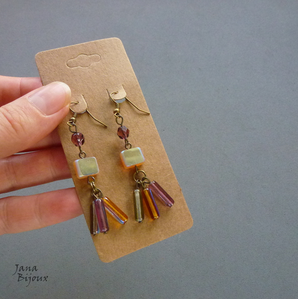 Brincos compridos 7,5 cm de ouro velho e vidro espelhado. Anzol sem niquel  R$ 18,00