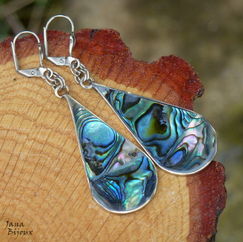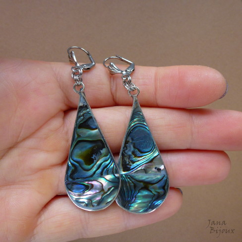 Brincos compridos 6,7 cm de alpaca, abalone e fecho de bijuteria R$ 19,00