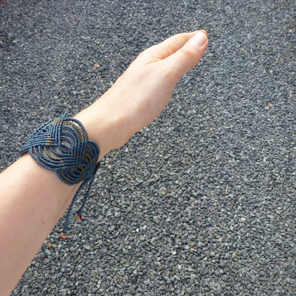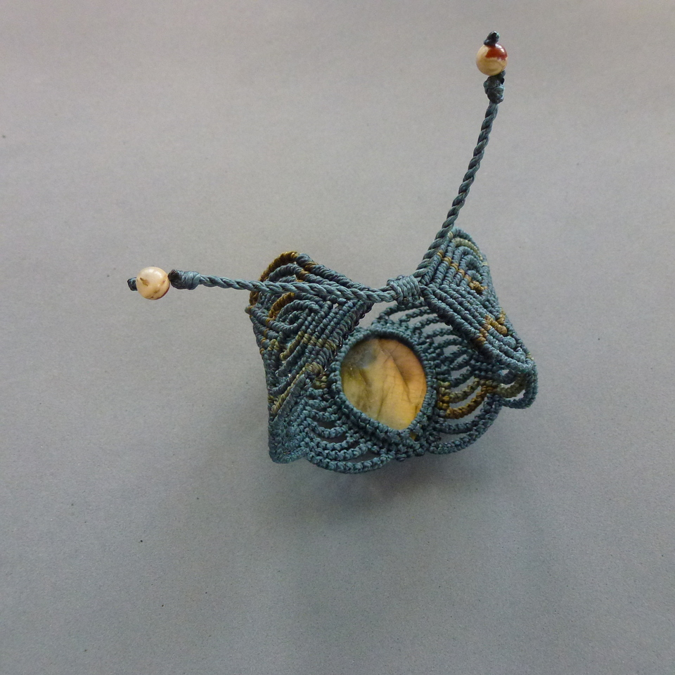 Obs: O Macramê é uma técnica de tecer fios que não utiliza nenhum tipo de maquinaria ou ferramenta. É uma forma de tecelagem manual. Trabalhando com os dedos, os fios vão se cruzando e ficam presos por nós, formando cruzamentos geométricos, franjas e uma infinidade de formas decorativas. A técnica é trabalhosa e demorada..como todo trabalho manual delicado – valorize.