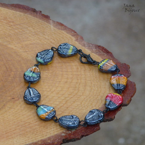 n93 17/11/2013VENDIDOS ( Prodáno)Jana Bijoux Pulseira de componentes pretos e vidro metálico com manchas multicoloridas, comprimento 19,5 cm R$ 24,00