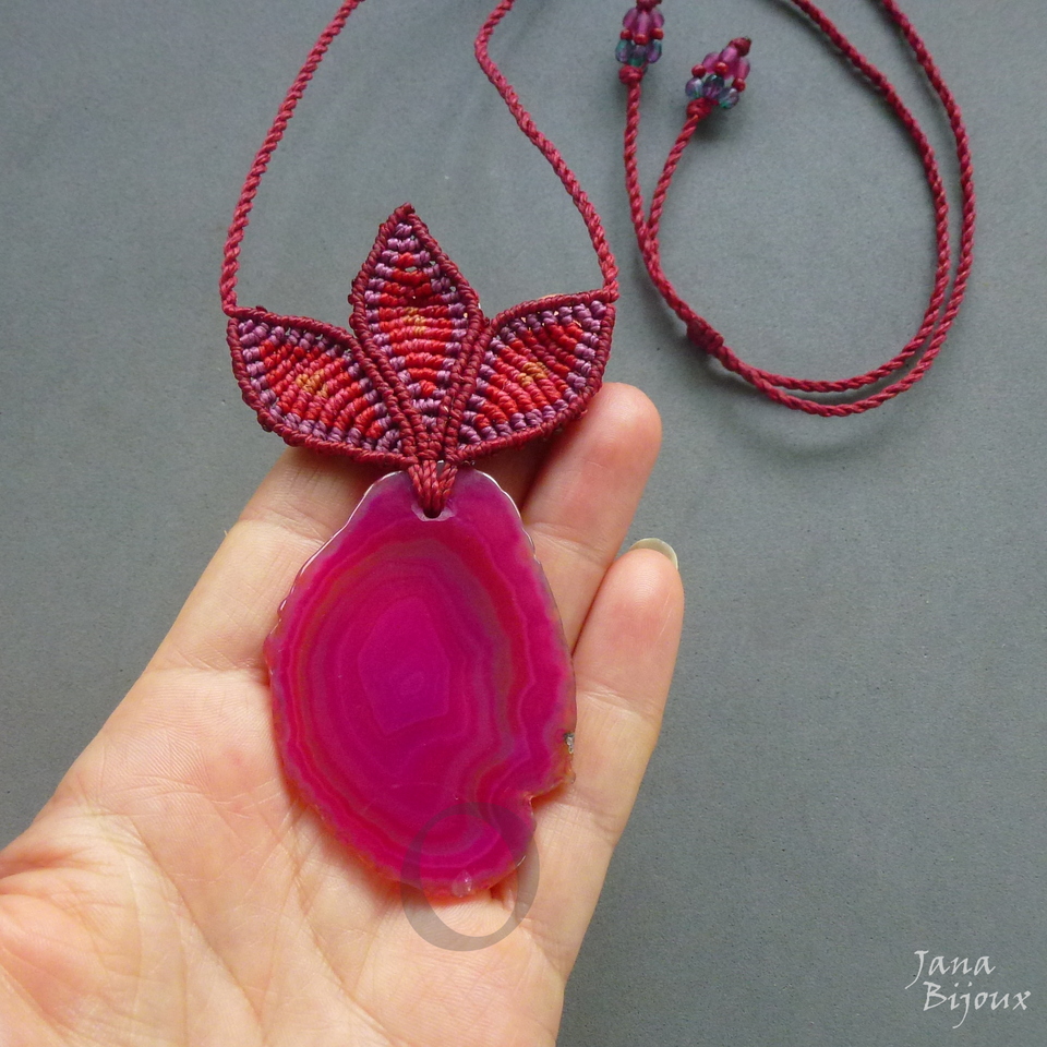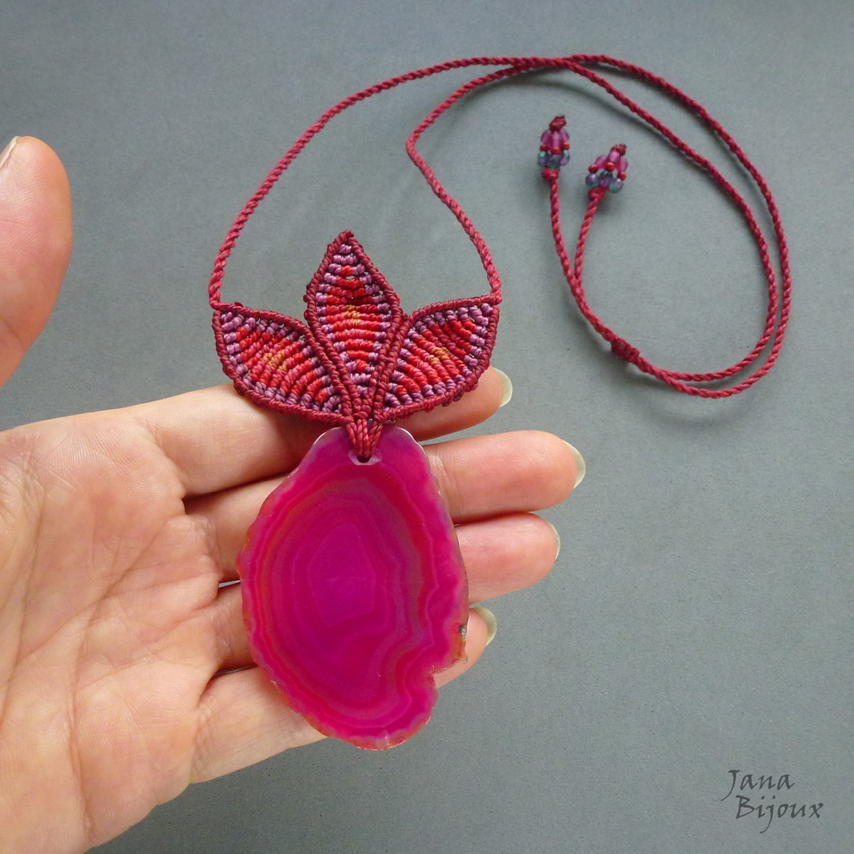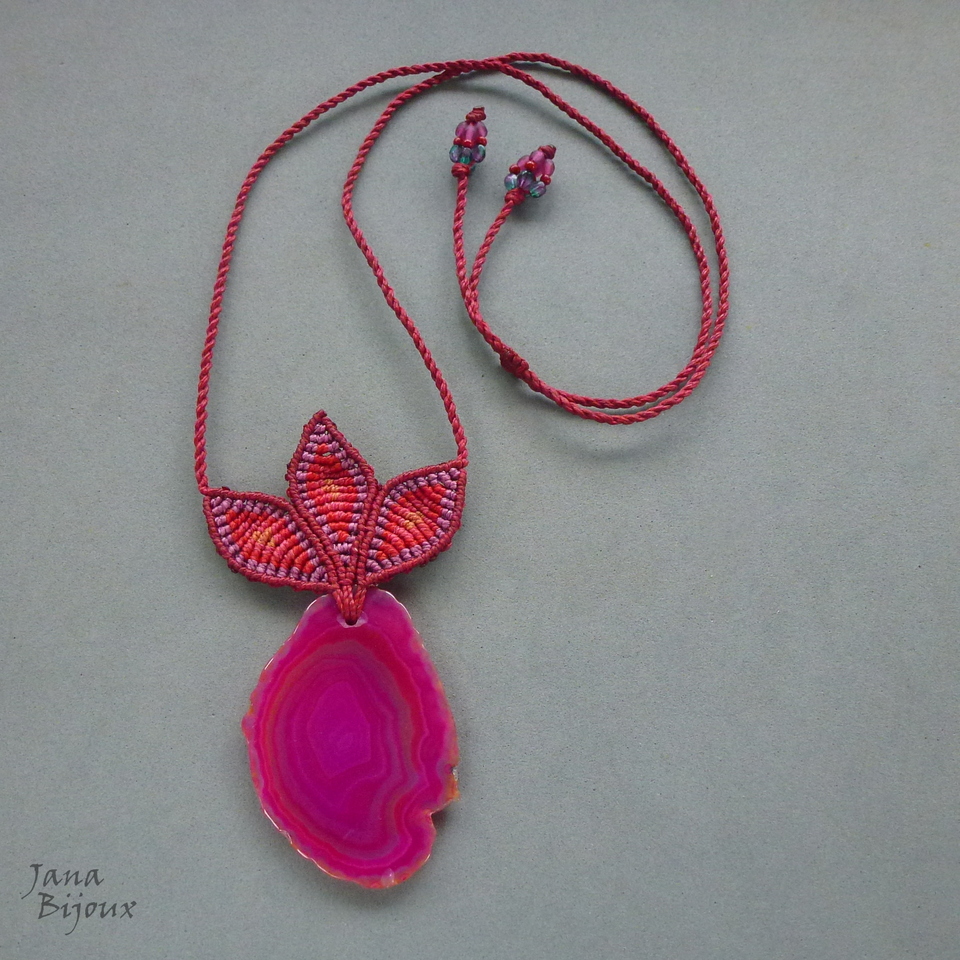 Pedra - é ágata brasileira, tingida,  mede 6 cm por 4,2 cm, o pingente inteiro com as folhas tem 10 cm. A pedra tem pequena lasca em baixo, conforme a última foto, já recebi assim, mas no pescoço fica invisível.
