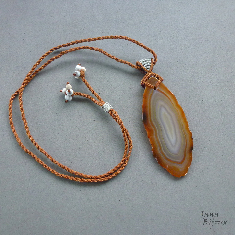 Colar unissex, com agata em cor caramelo ferrugem.