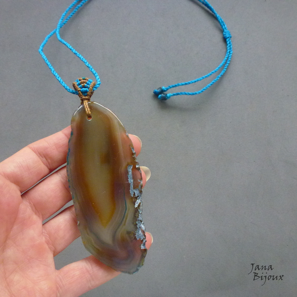 Pedra - ágata mede 9,5 cm por 4 cm o pingente inteiro com a alça tem 11,2 cm e tem livre movimento no cordão.