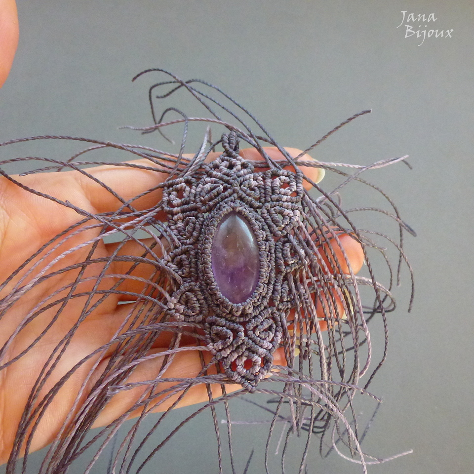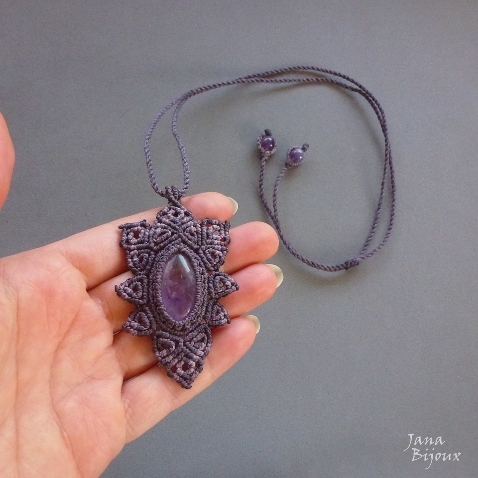 Colar com ametista, pingente de livre movimento no cordão, comprimento do colar é ajustável, abre até 82 cm, nas pontas tem tmb ametista . O colar pode ser usado como curto, médio ou comprido .