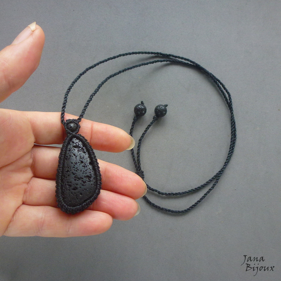 O colar tem comprimento ajustável, caimento perfeito, abre até 83 cm, nas pontas tem 2 bolas de pedras de vulcão e a mesma tambem tem em cima da pedra no pingente. O colar pode ser usado como curto, médio ou comprido, acabamento perfeito.