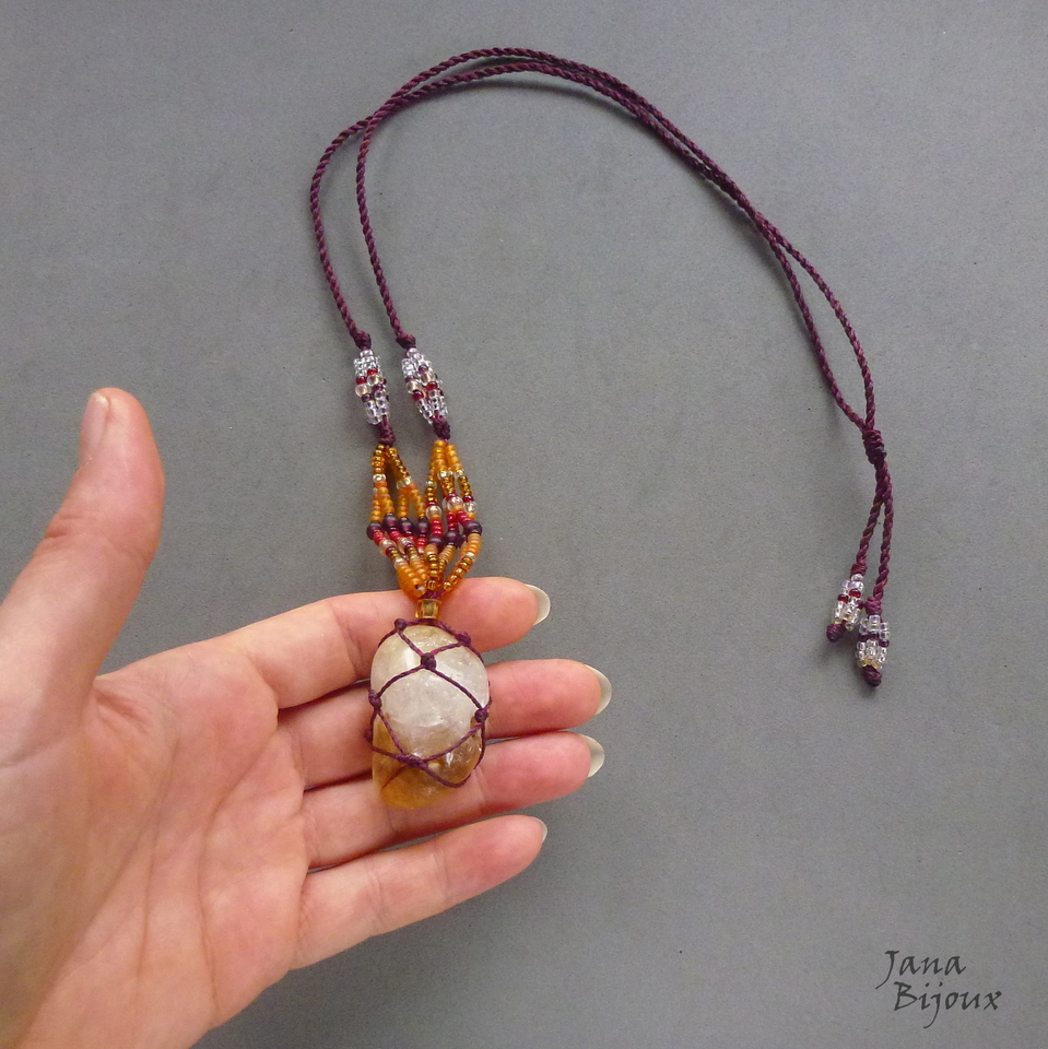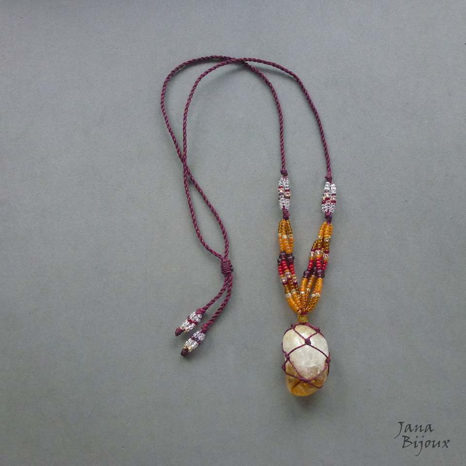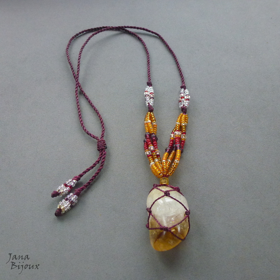 Citrino castroada, miçangas e comprimento ajustável.