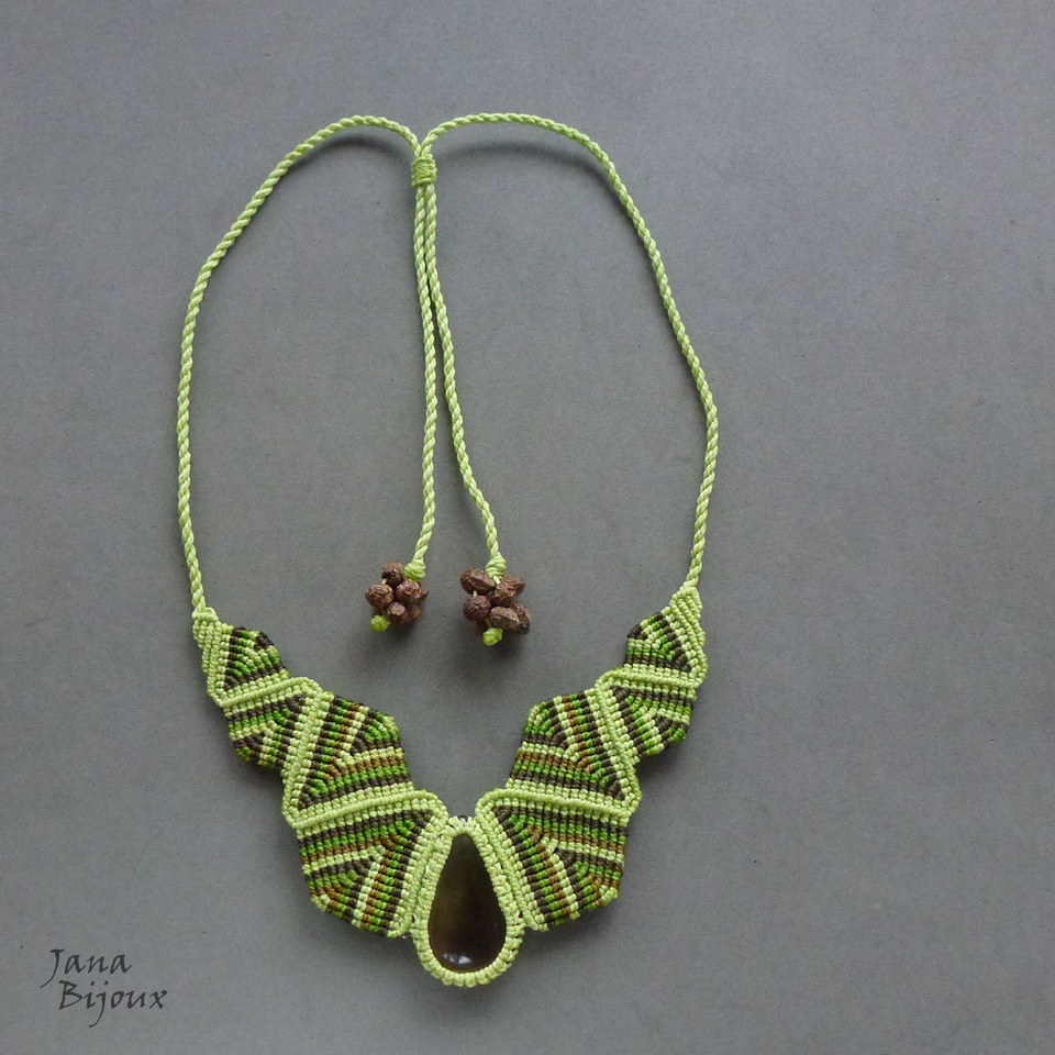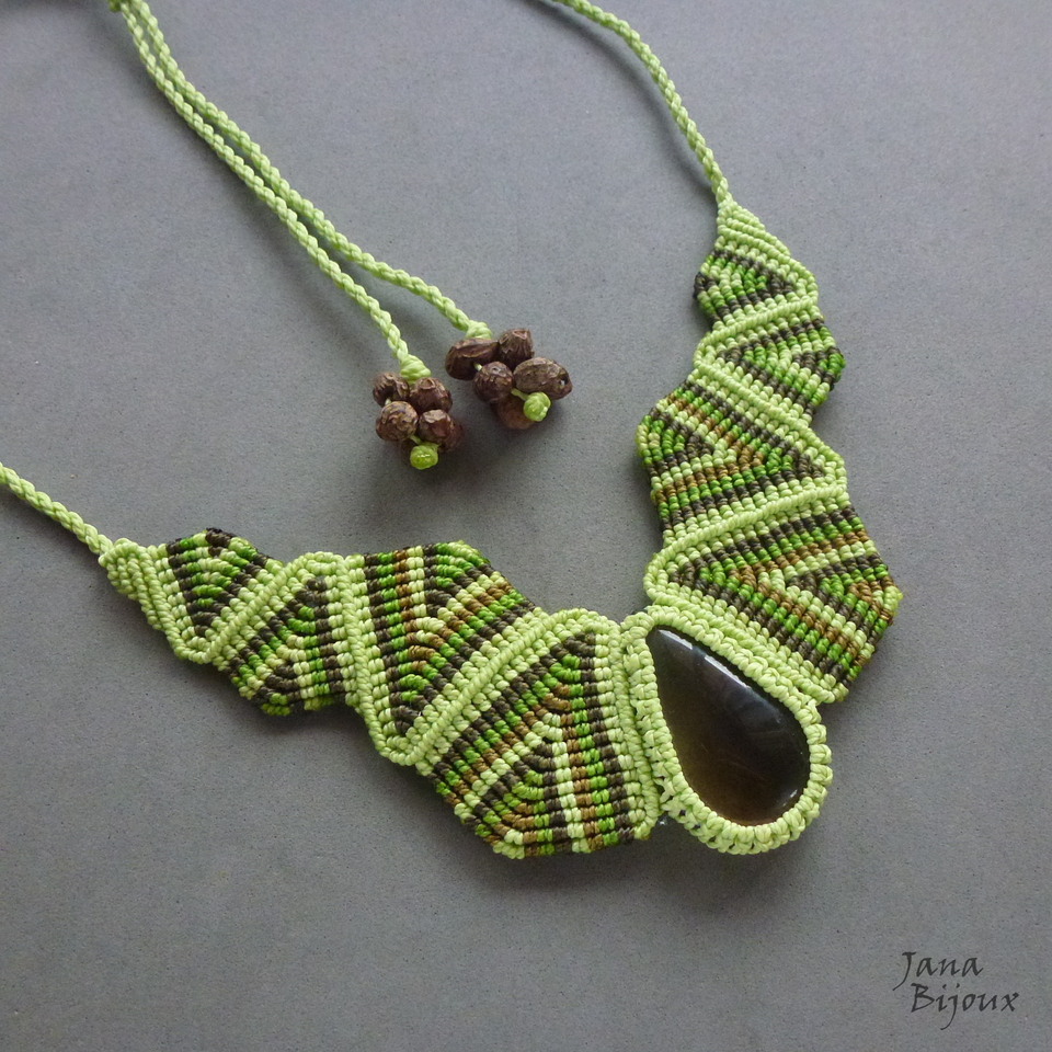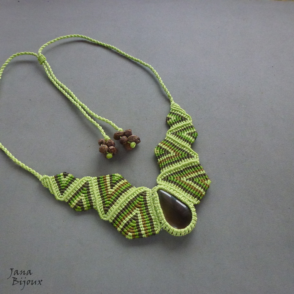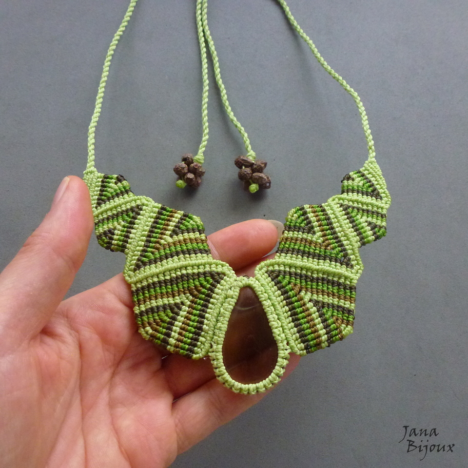 Colar tribal de parar o trânsito, feito de muito macramé  e quartzo fumê .