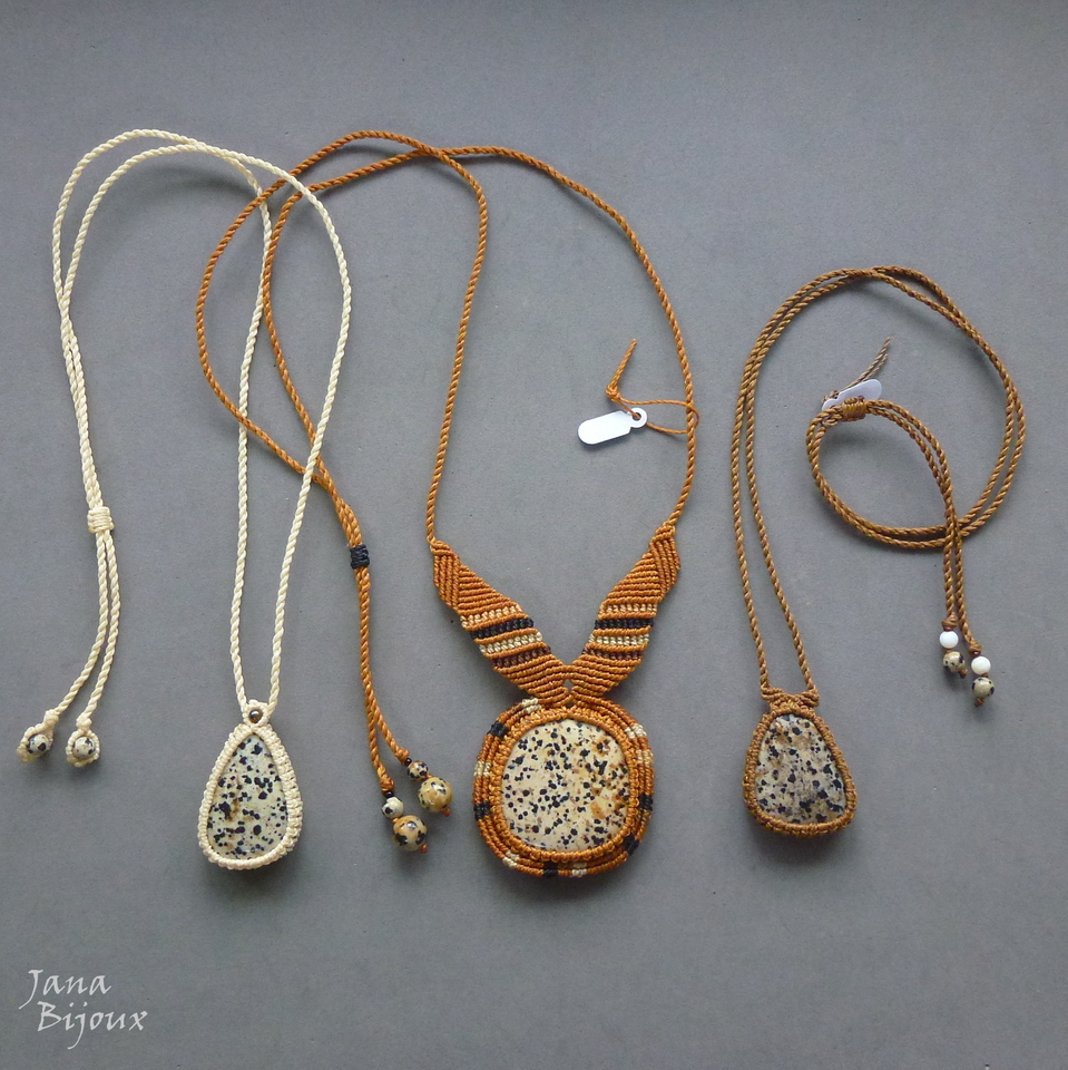 Colar com pedra jaspe dalmata em cor clarinha.