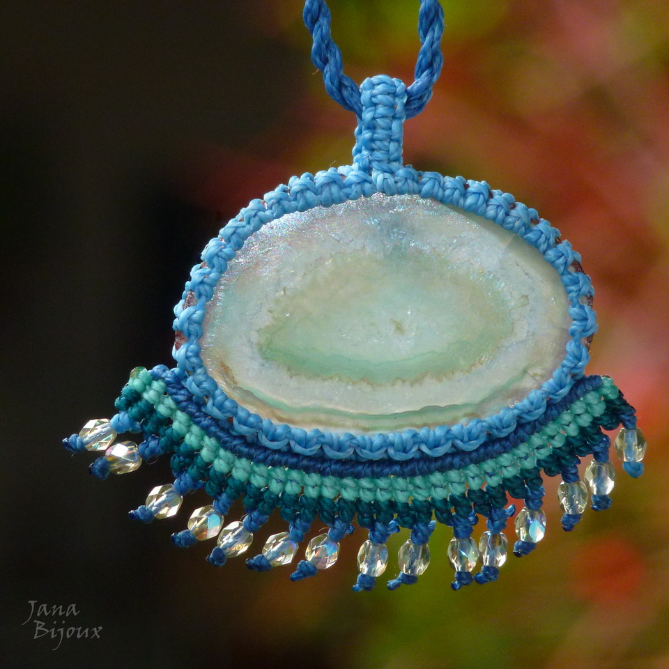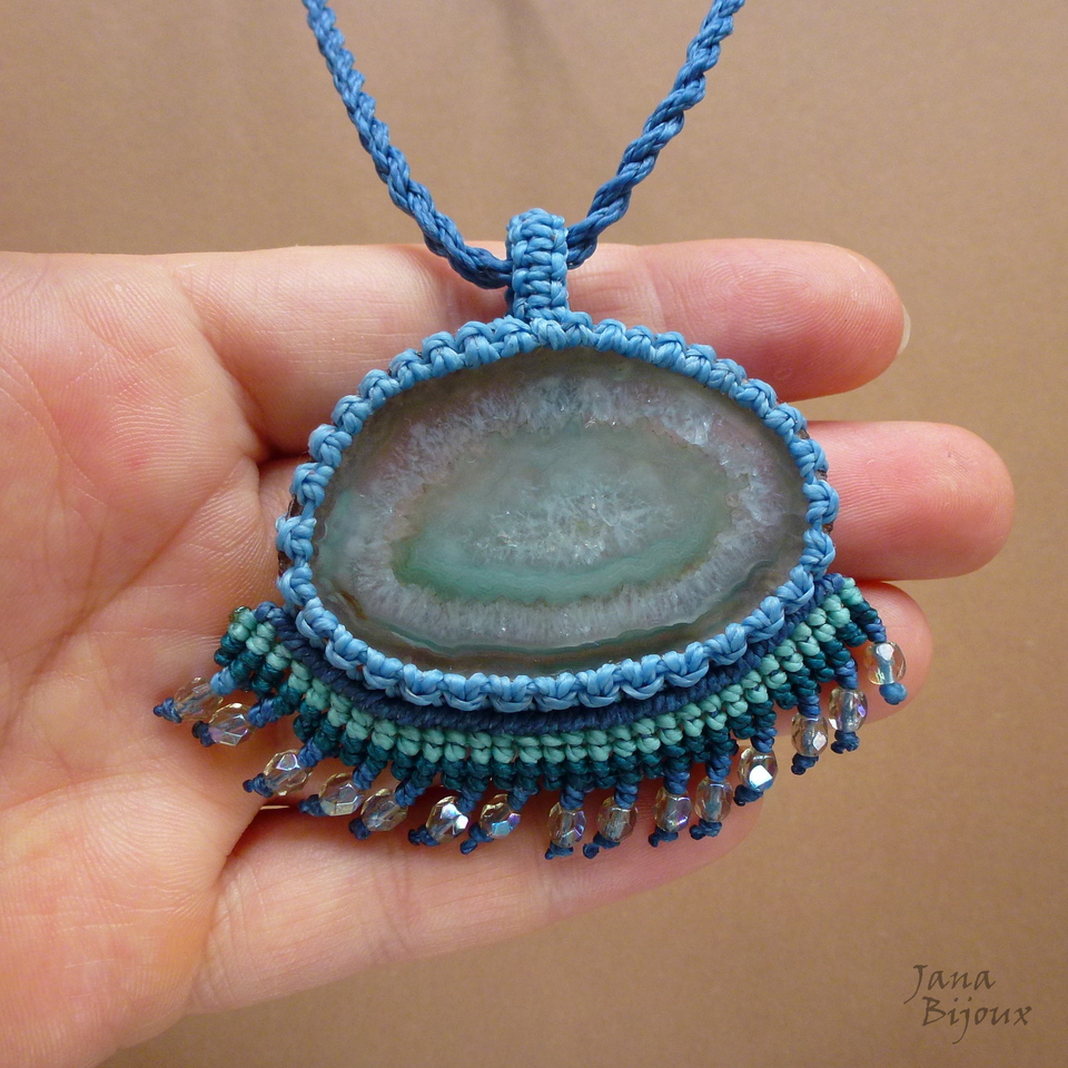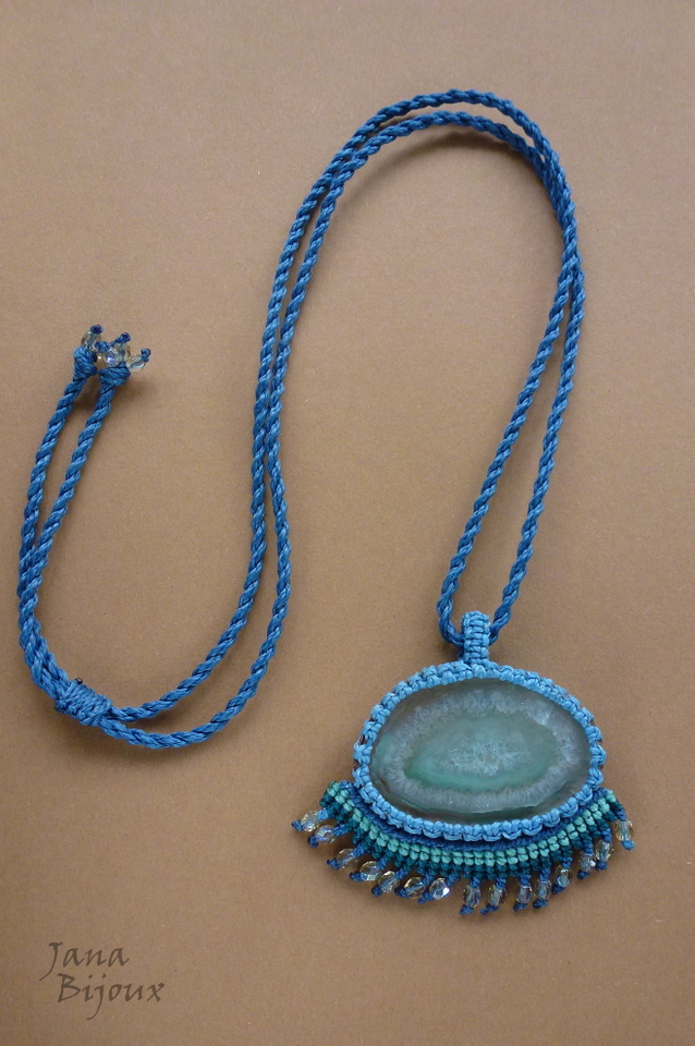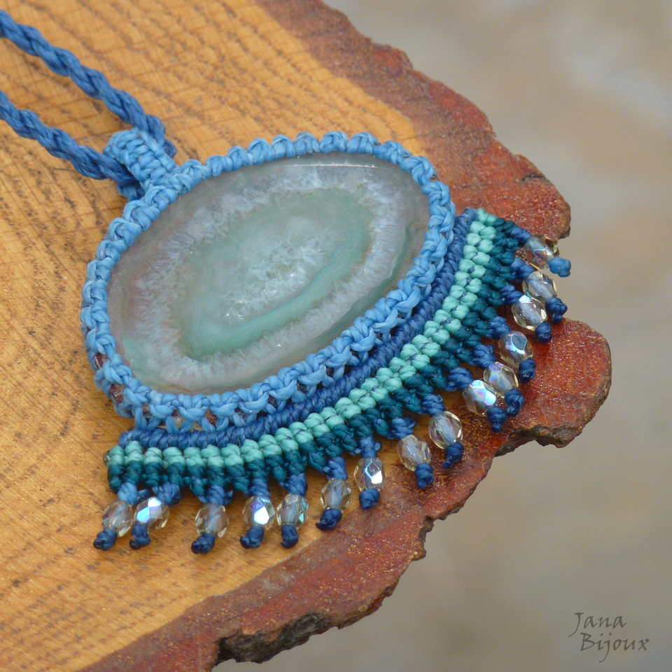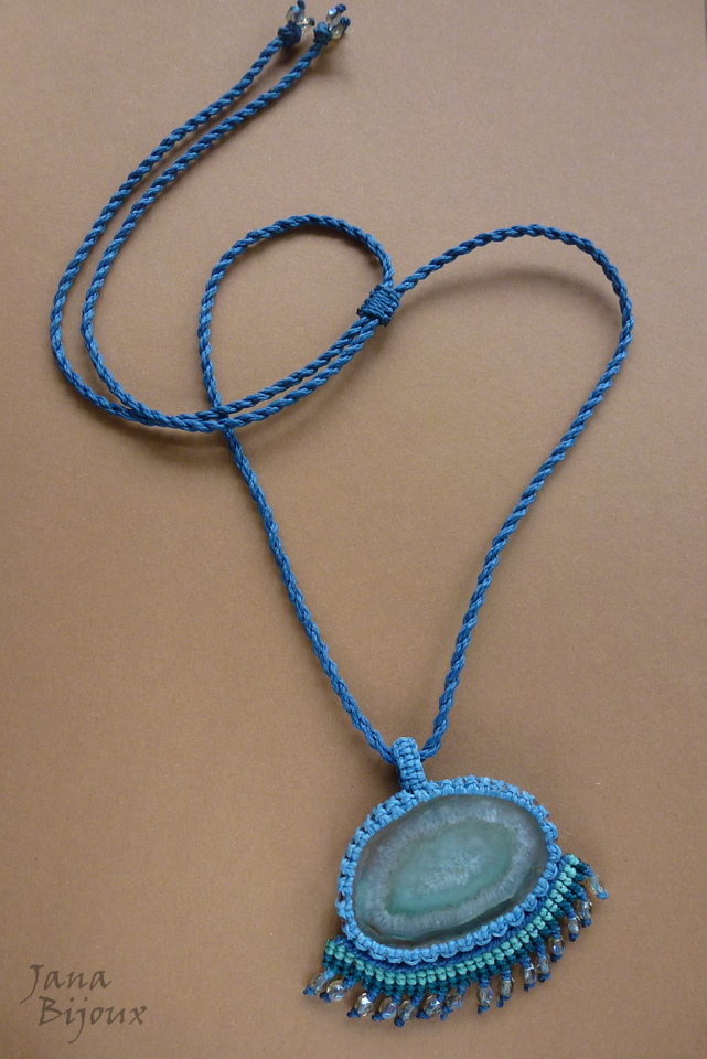 Colar com pingente menor com a franja.. agata e macramé.