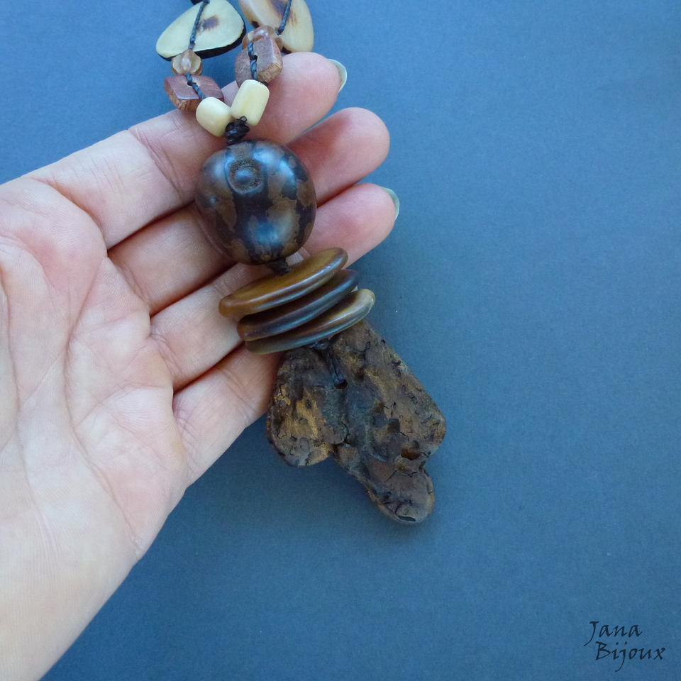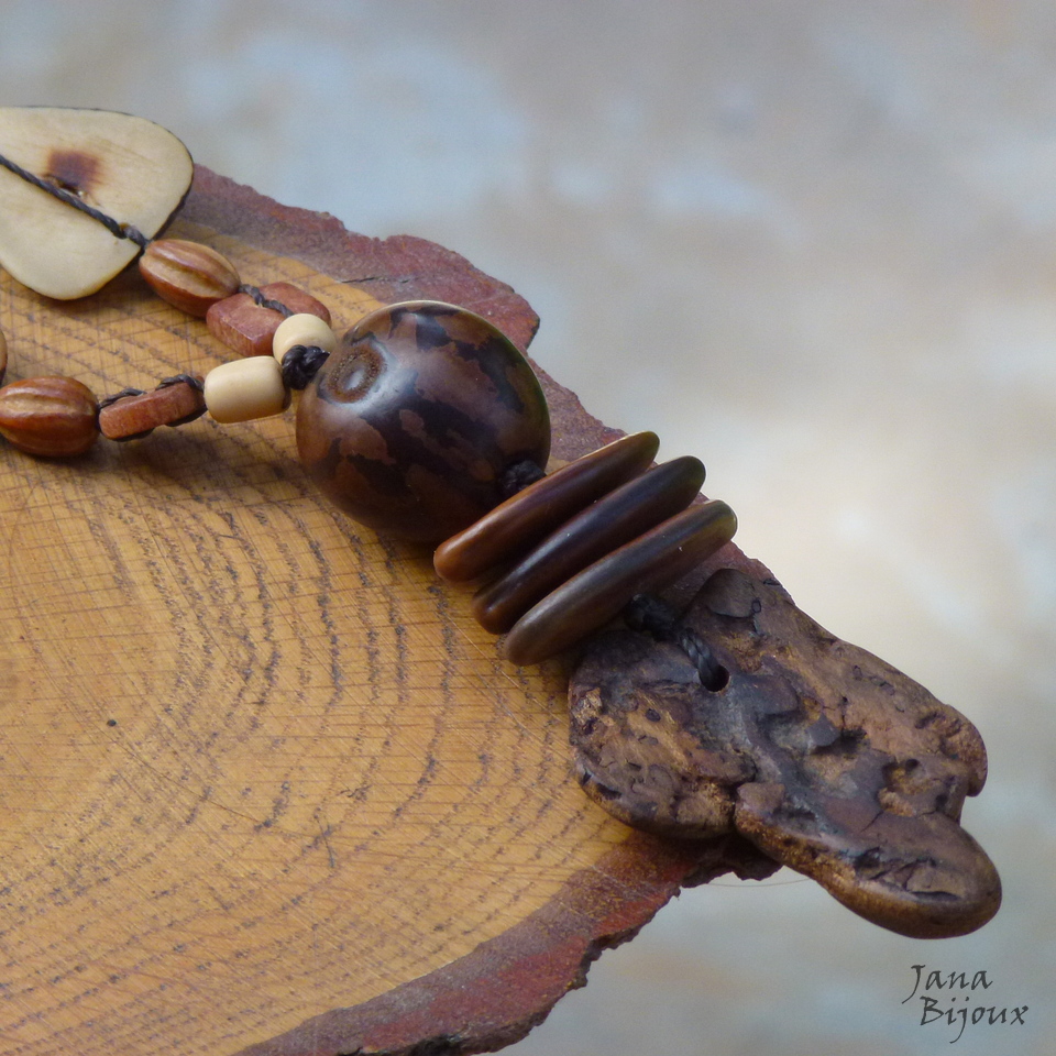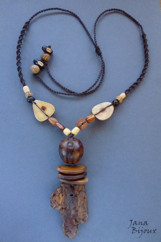 Náhrdleník má 3 části. Část se semínkama a dřevem měří 17 cm, další část drhaná má 9 cm a zbytek je nastavitelný.. max rozměr dokola náhrdleníku je 86 cm, min. 38 cm (bez centrálního semínka buriti a dřeva)
