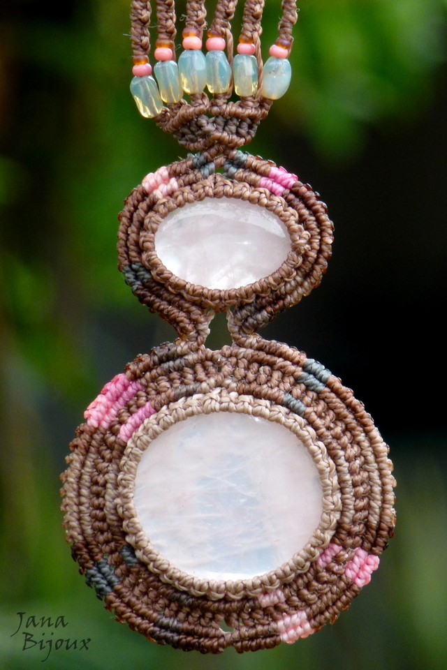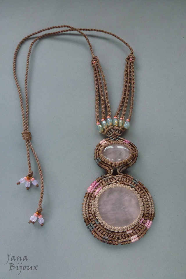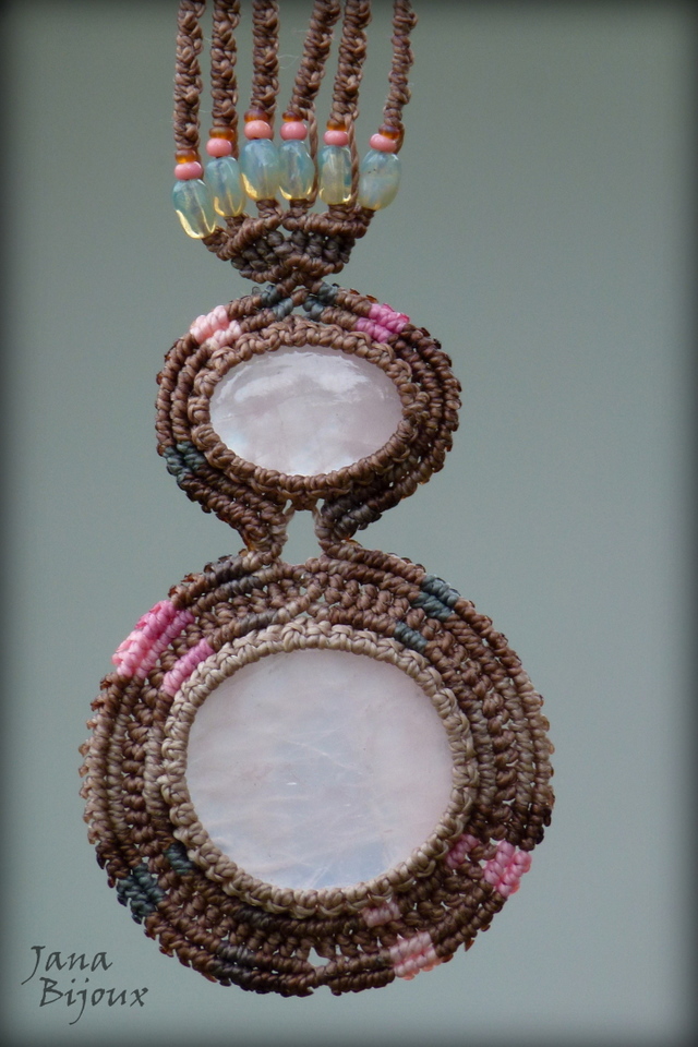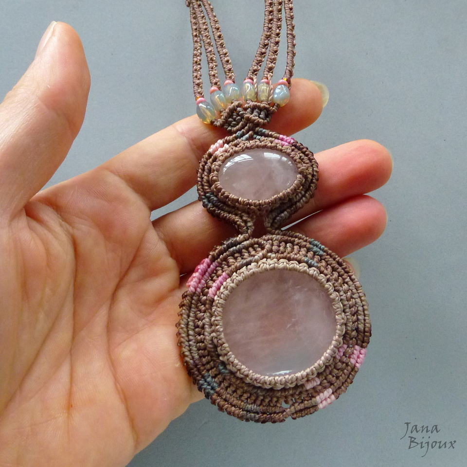 Quartzo rosa 2x num colar de macramé.