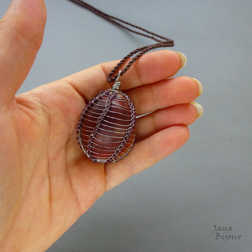 Possível encomendar o mesmo trabalho com pedra arredonda, rústica de quartzo ou com miçangas em outra cor, ou com corrente de inox em vez de fio ou com outra cor de fio.
