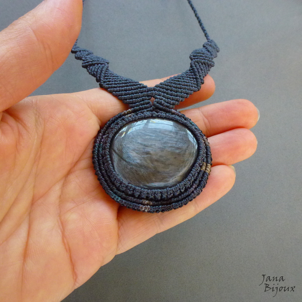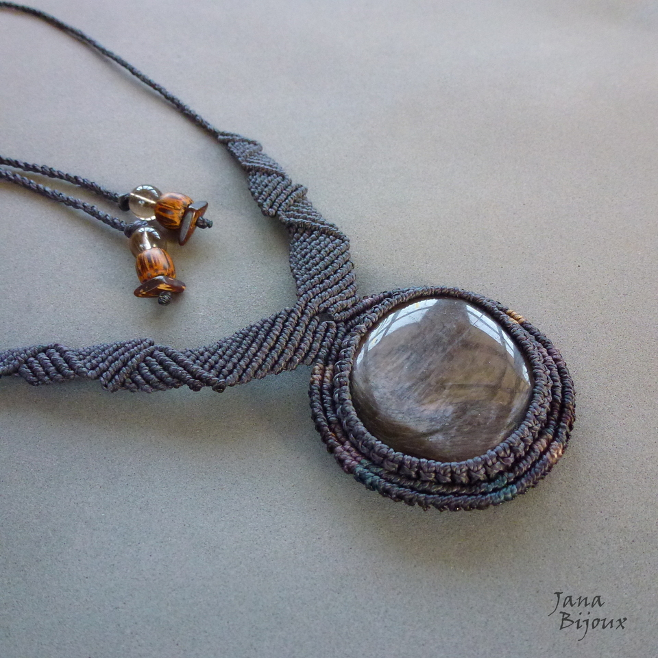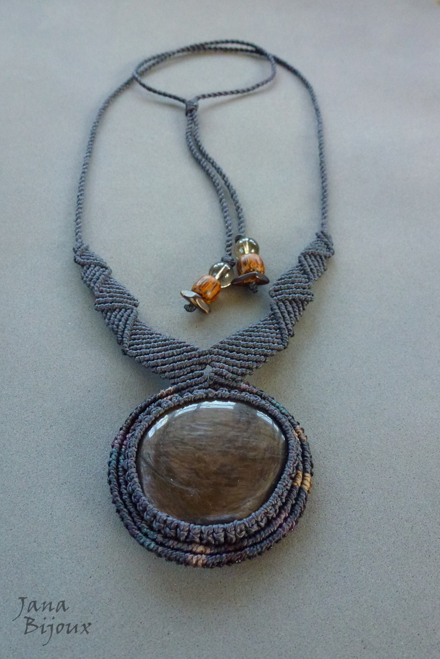Náhrdelník s hypestenem, záhnědou a makramé.