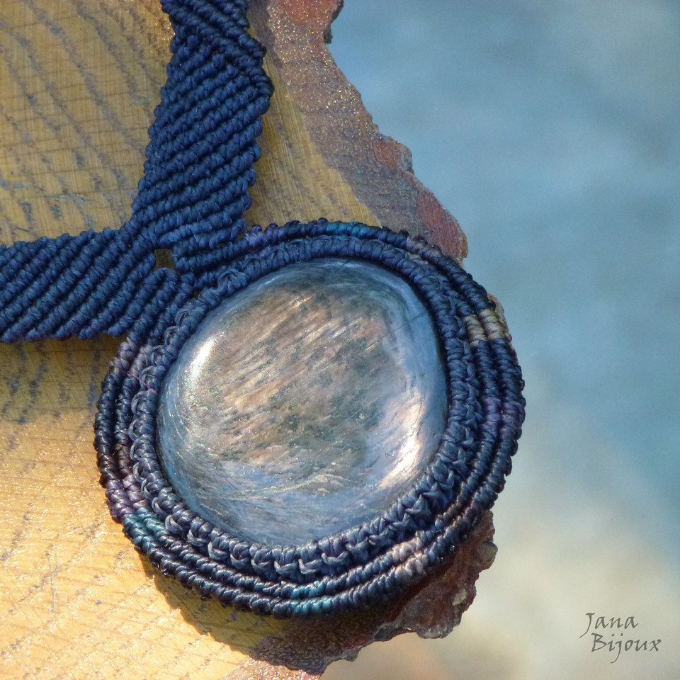 Barva nití: grafitová s lehkým šmrncem do lilkové, naprosto dokonale ladí ke kameni, je velmi neutrální a půjde k jakékoliv barvě oblečení. Kolem kamene navíc hnědošedá, velmi tmavá hnědá, lilková tlumená, tmavá modrošedá = všechny odstíny velmi diskrétní a neruší kámen.