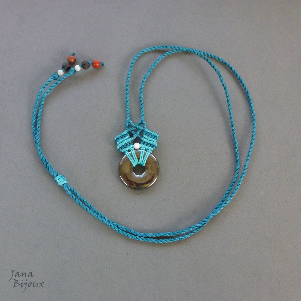 Um mimo, colar delicado com donut de hematita, madrepérola, pedra de vulcão e jaspe.