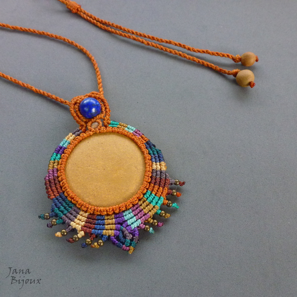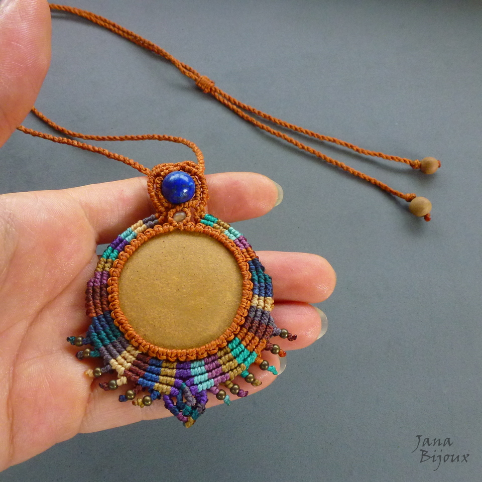 Colar com cerâmica da Janete Dallabona com macramé.