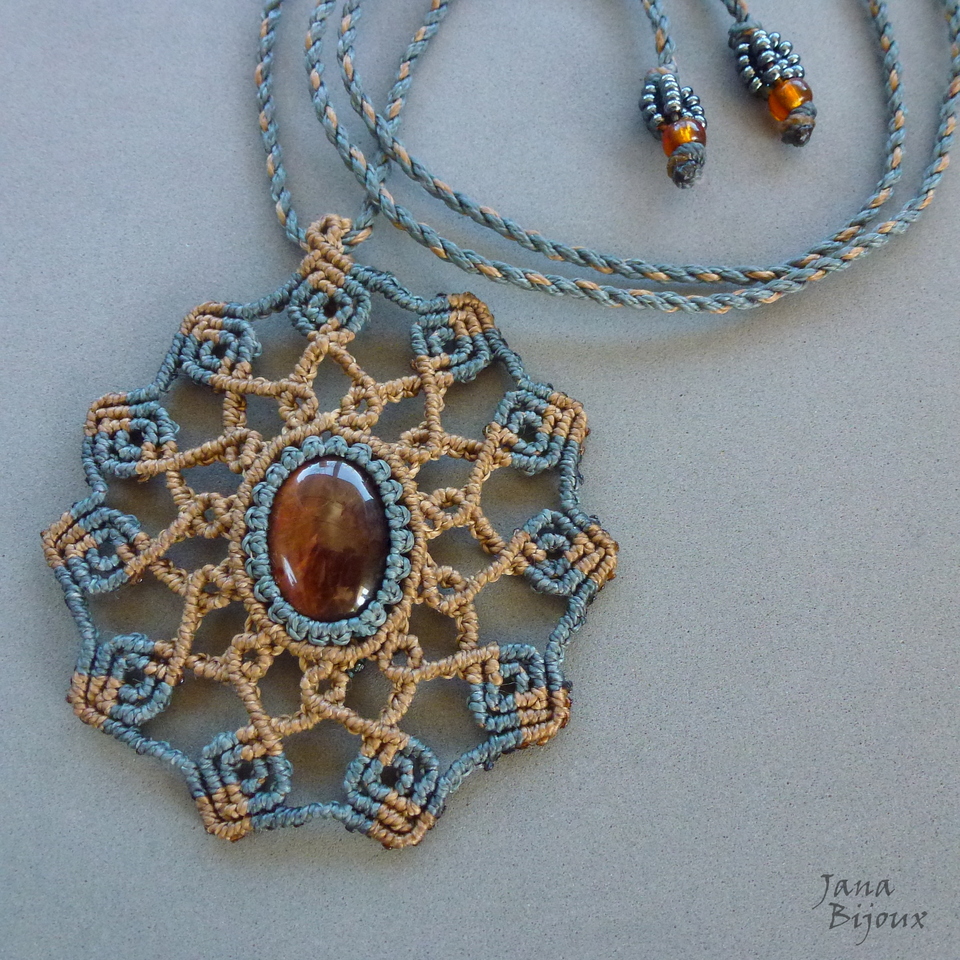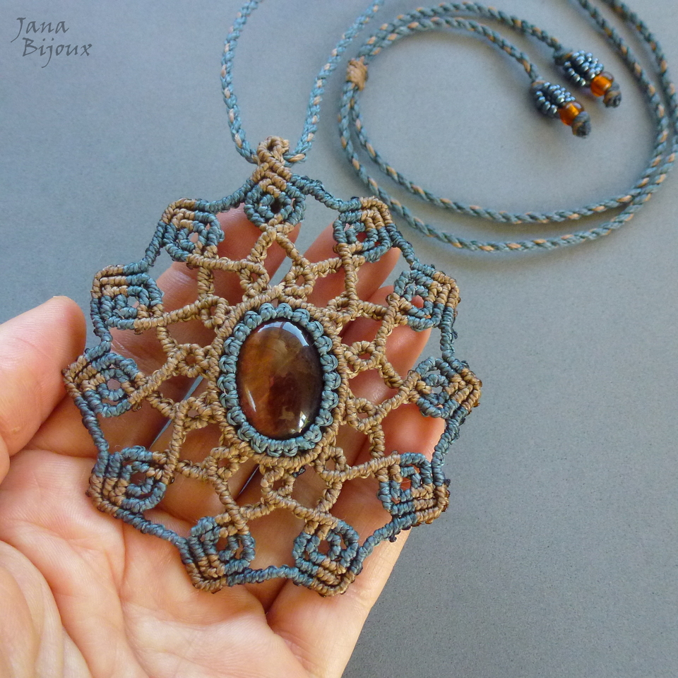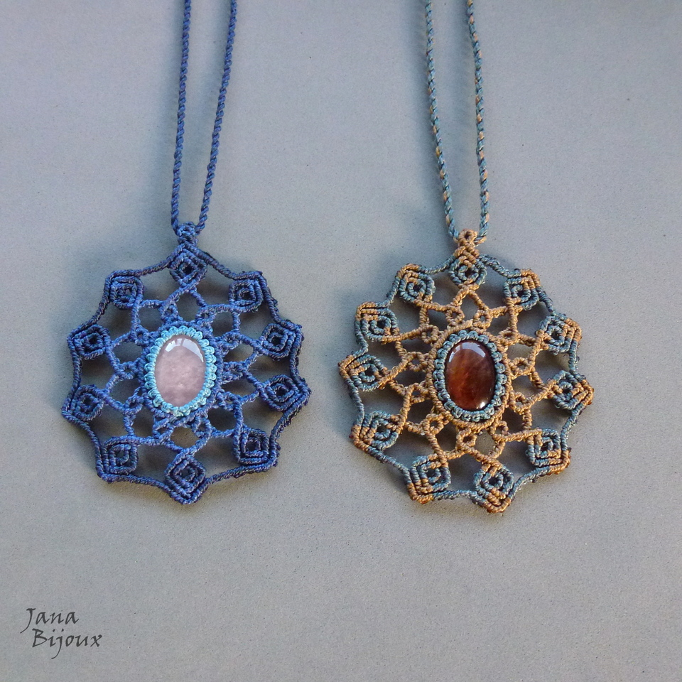 MANDALA, tem 2 cores, com alça mede 8,7 cm. A pedra central tem 2,5 por 2 cm, o pingente todo é super leve e trabalhoso.