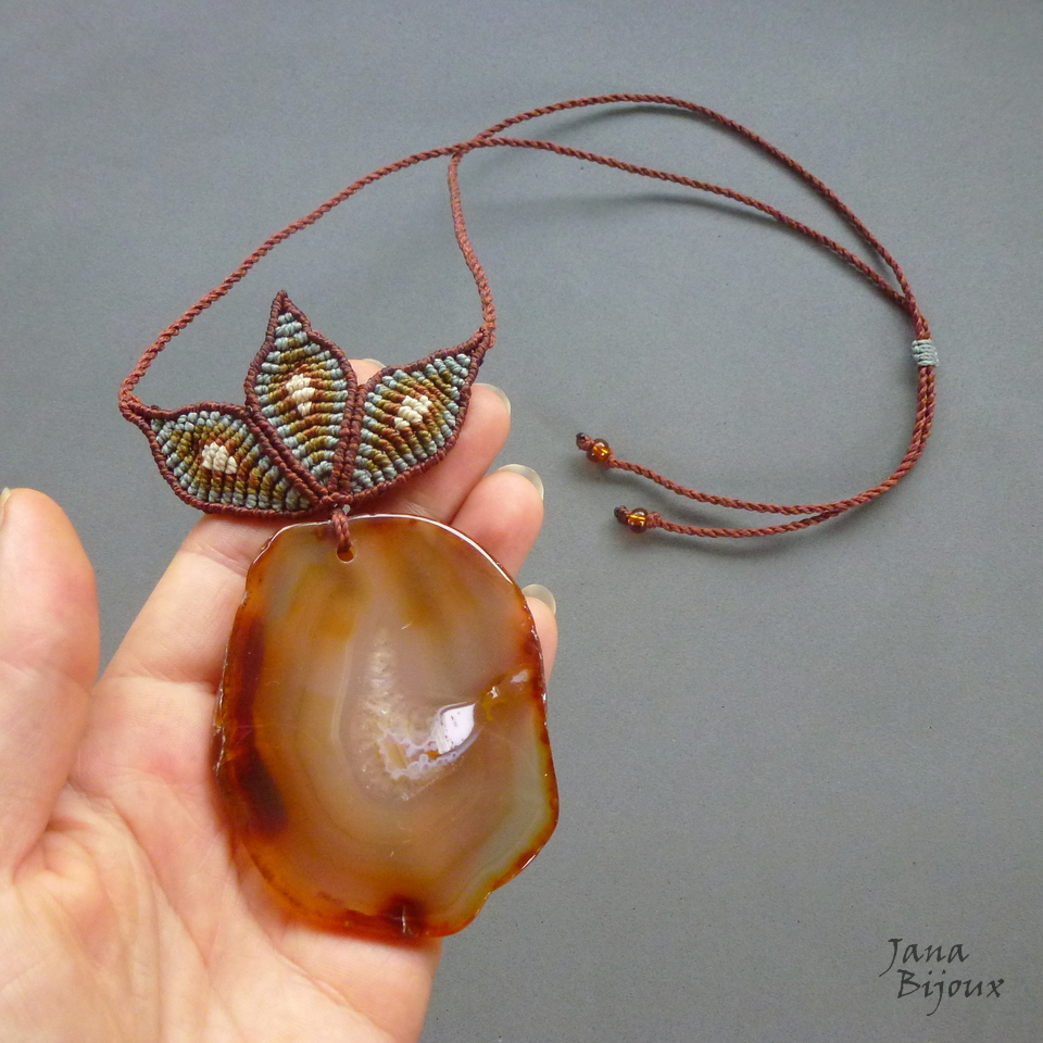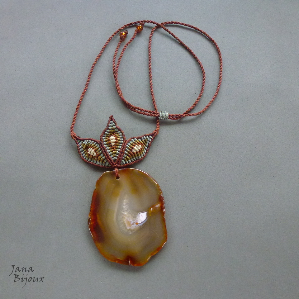 Pedra - ágata mede 7 cm por 5,5 cm, o pingente inteiro com as folhas tem 11,5 cm .