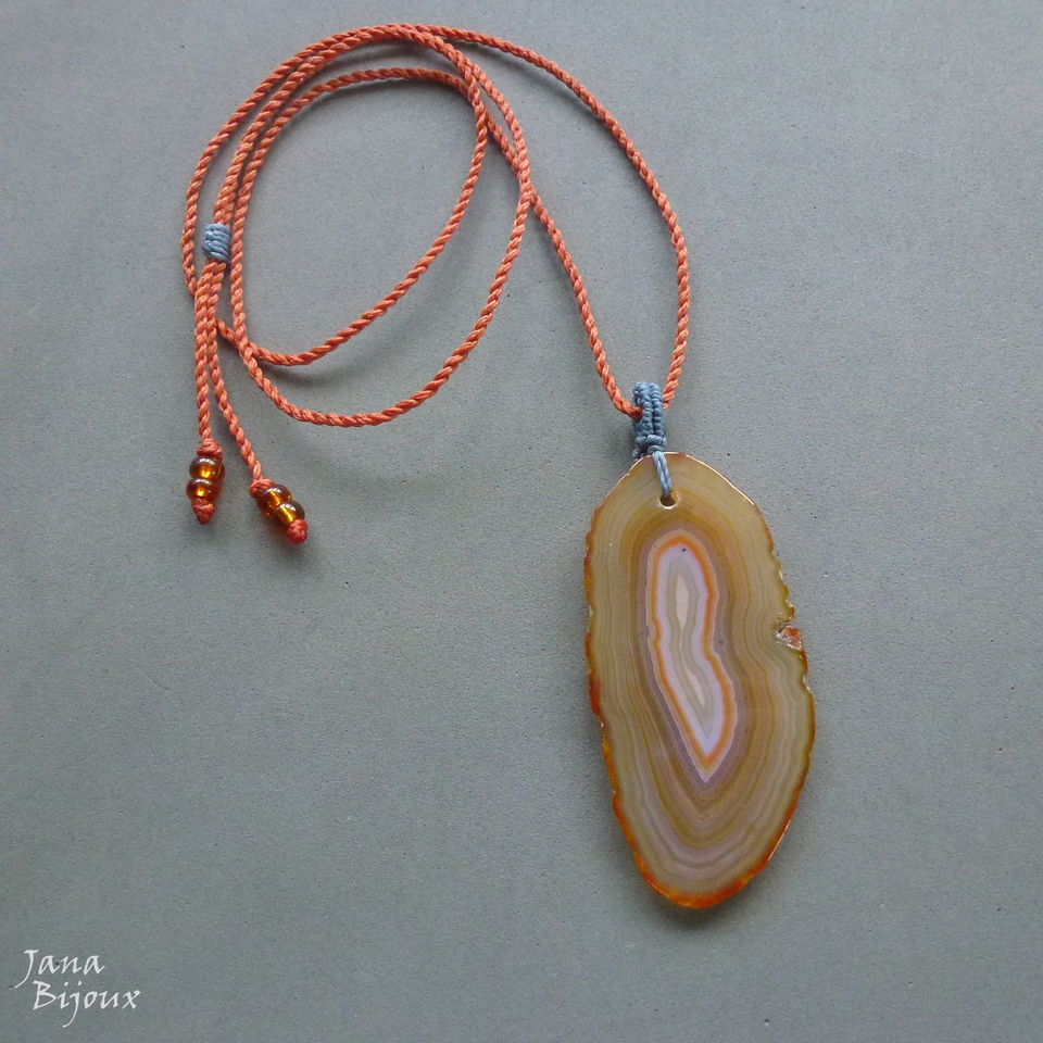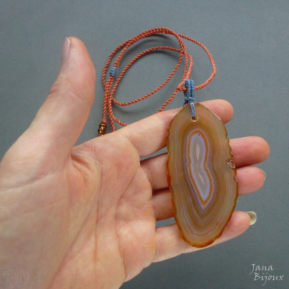 Pedra - ágata mede 7,7 cm por 3,6 cm o pingente inteiro com a alça tem 9 cm e tem livre movimento no cordão.