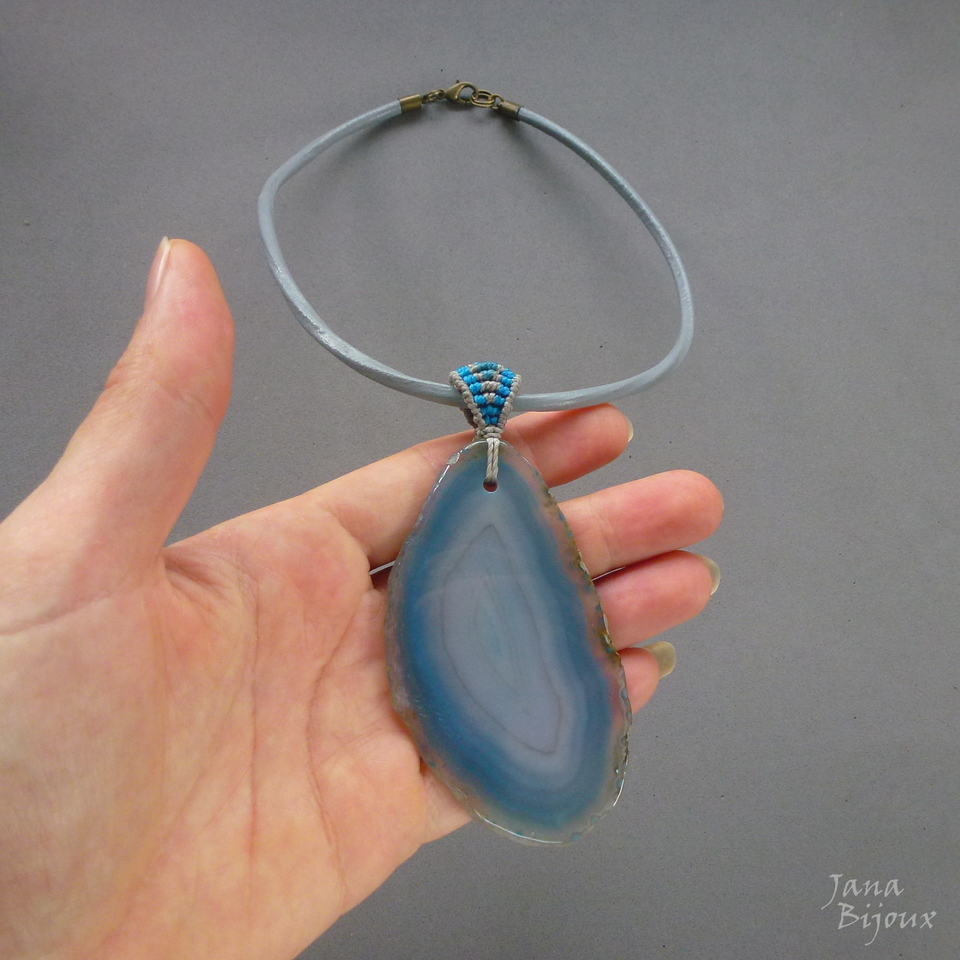 Ágata brasileira com alça de 3 tons de macramé.