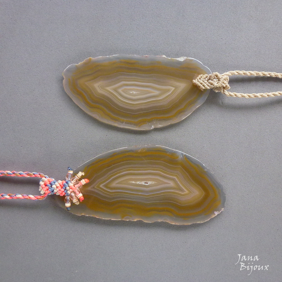 Pedra - ágata mede 10 cm por 4,4 cm o pingente inteiro com a alça tem 10,7 cm e tem livre movimento no cordão.