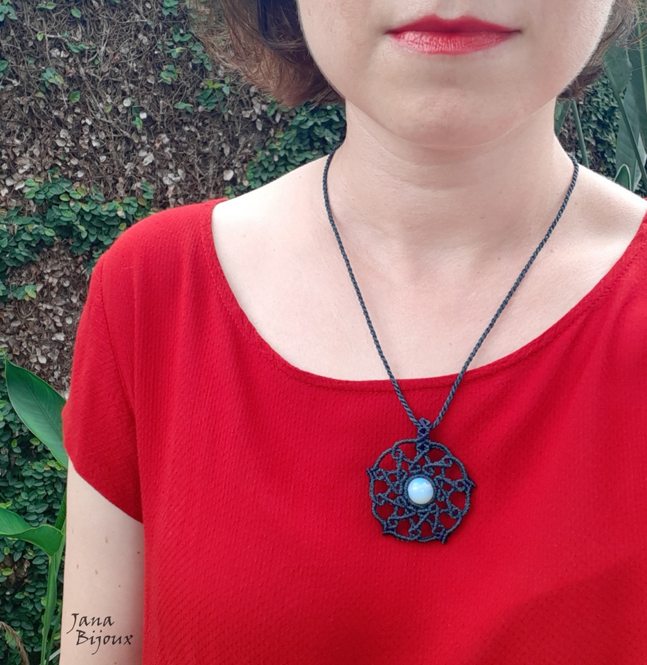 Mandala delicada, menor com opalita. Possível como colar unissex.