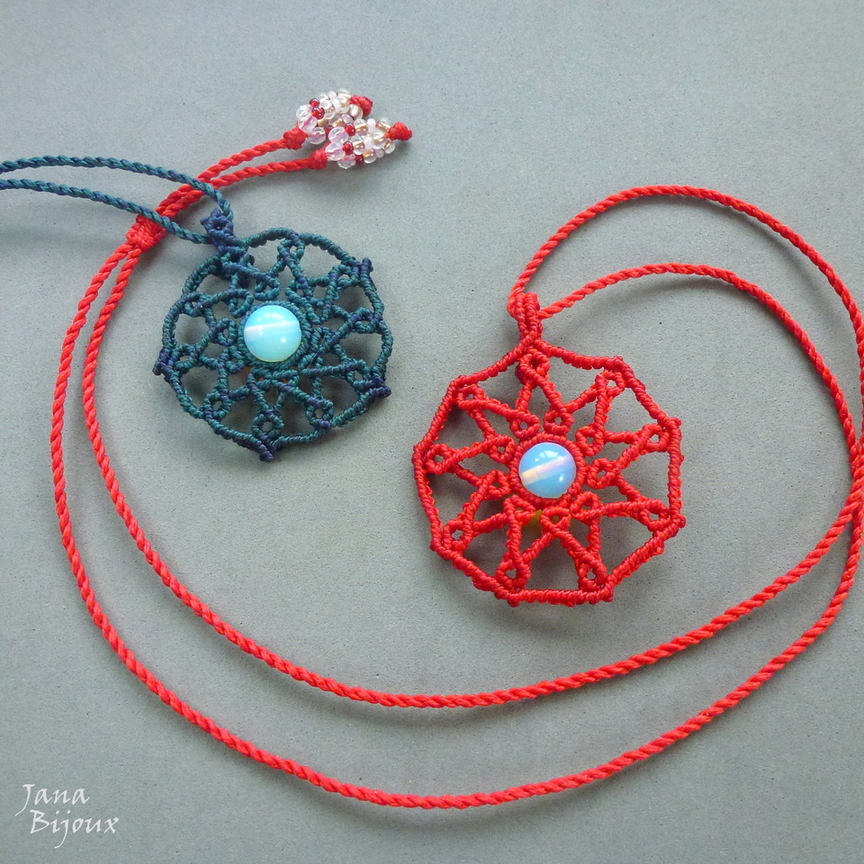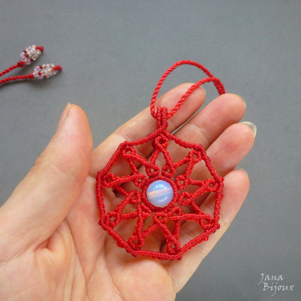 Mandala vermelha, delicada, com opalita.