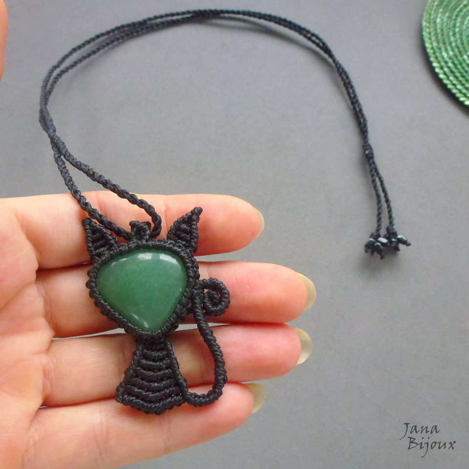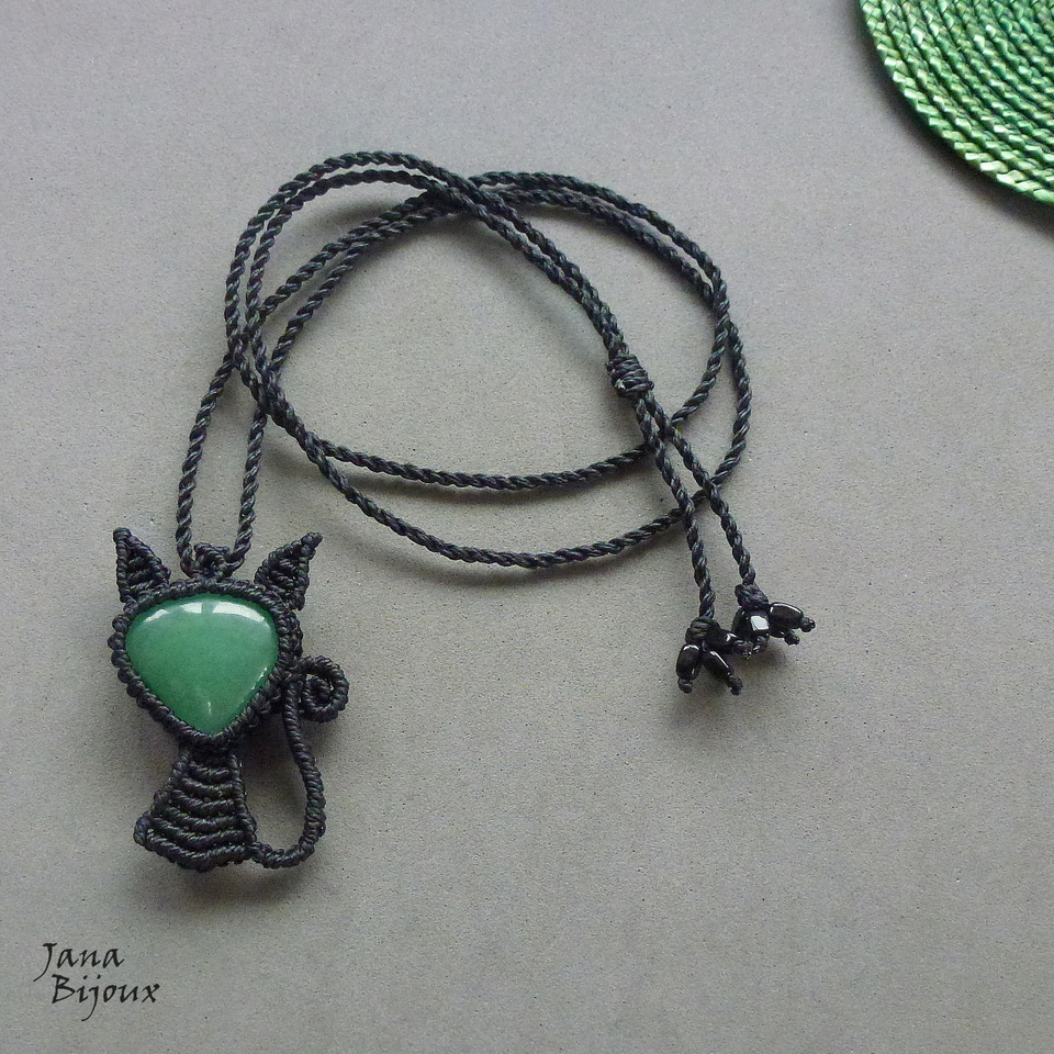 Colar delicadinho, ajustável, com pedra natural aventurina e macramé.
