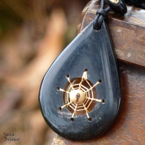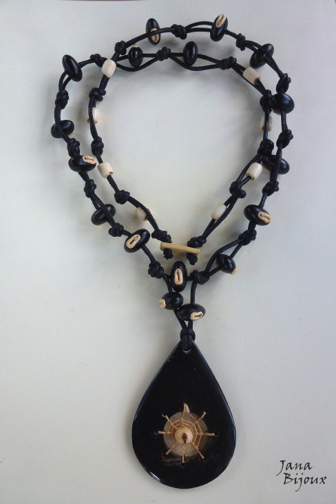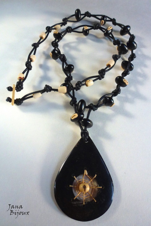 DLOUHÝ, VÝRAZNÝ A ČERNÝ NÁHRDELNÍK S ROHOVINOVOU SLZOU A SEMÍNKY. NÁHRDELNÍK BEZ JAKÉHOKOLIV KOVU.