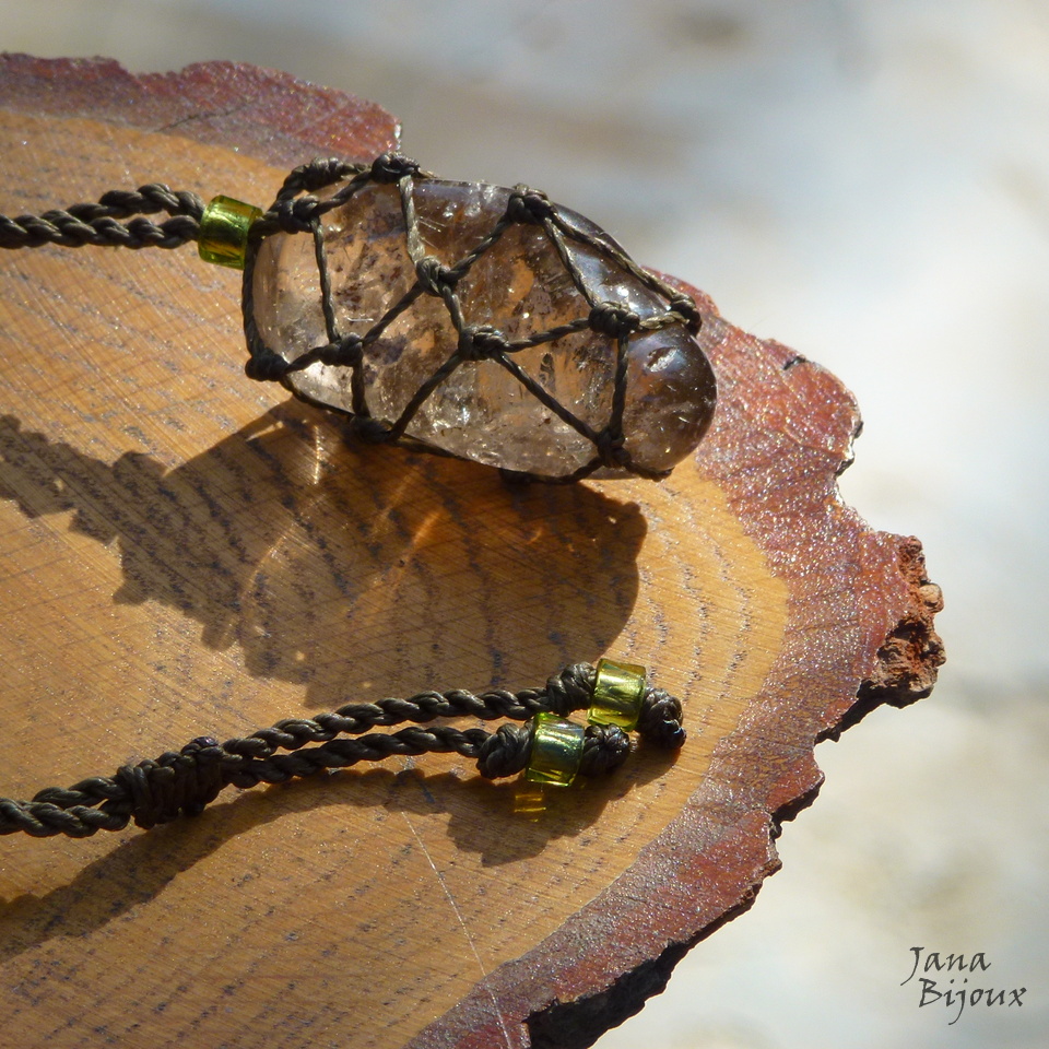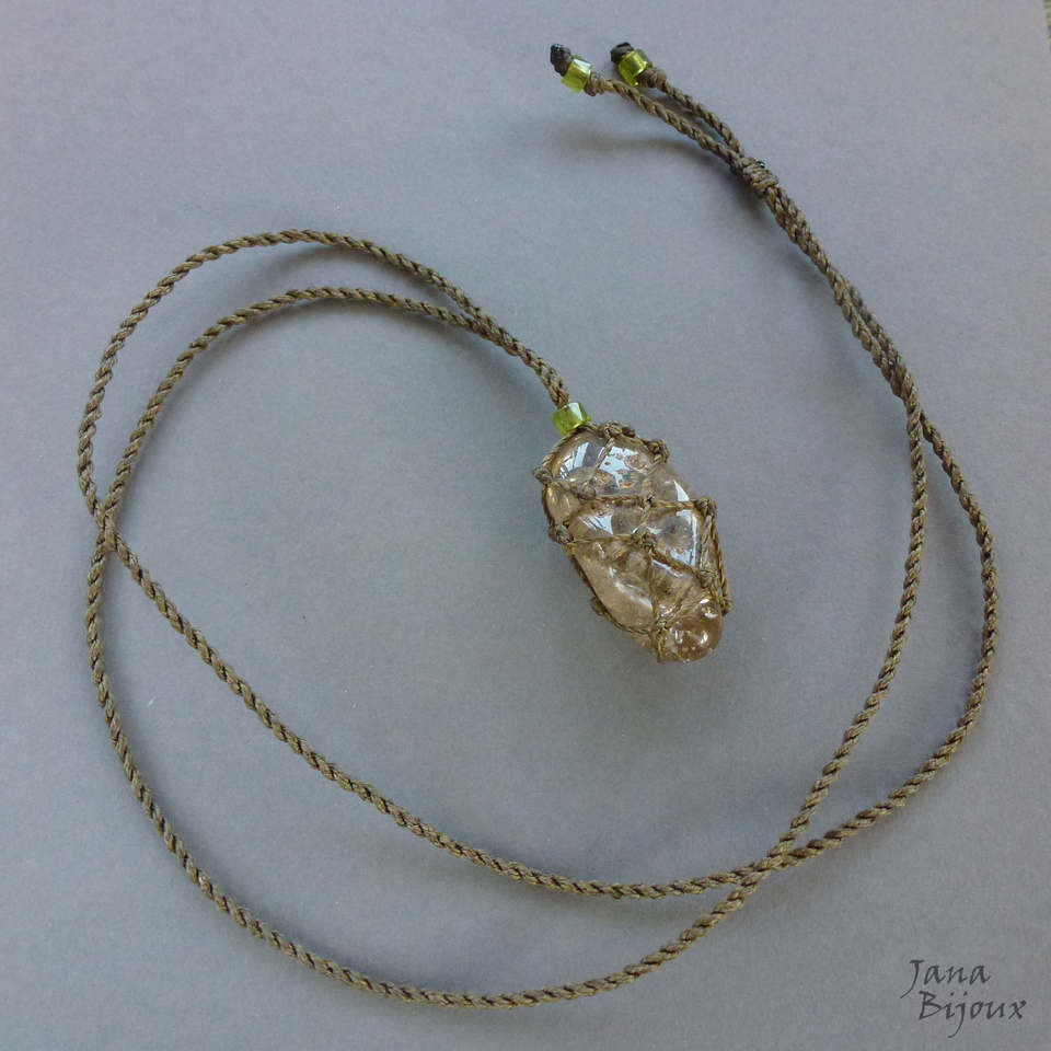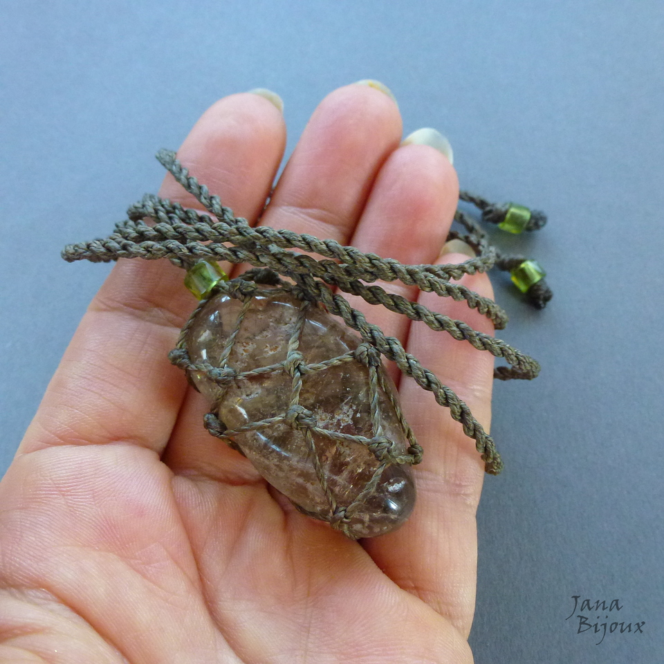 Pedra mede 4 x 3 cm. Com macramé tem 5 cm. Segura só com nós, sem cola e sem furo. Tem movimento livre no cordão