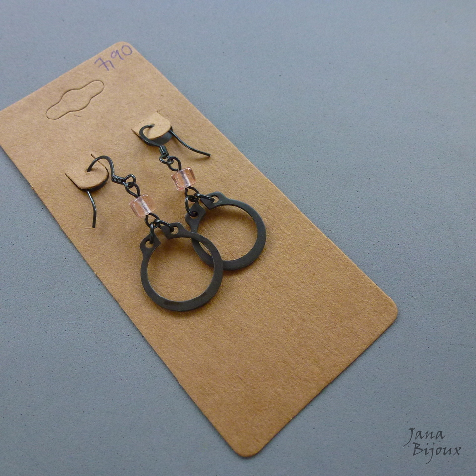 Brincos super leves, com vidro rosa transparente, delicado e aneis industriais e anzois pretos. Comprimento 4,5 cm R$ 7,90