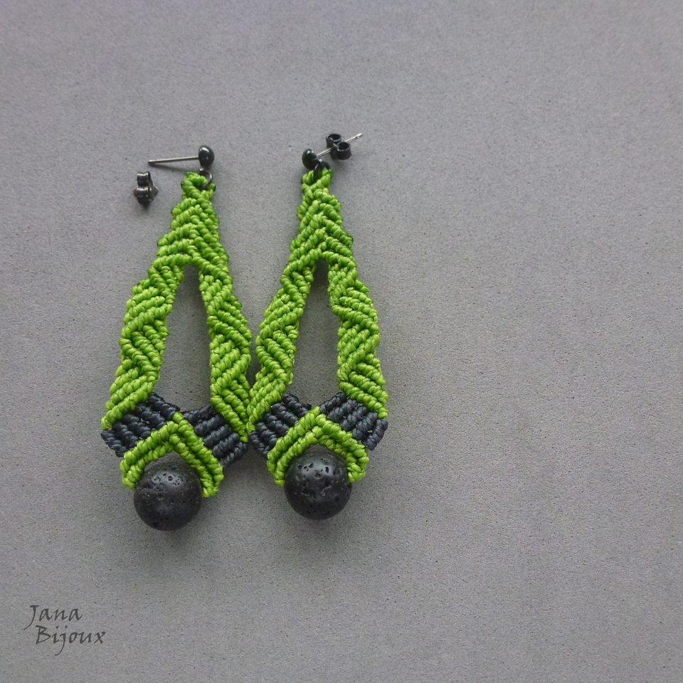 z158 03/04/2021VENDIDOS ( Prodáno)Jana Bijoux Novo modelos de brincos de macramé. Pedra de vulcão, verde vibrante claro e grafite. Comprimento 7 cm, fecho com titânio. R$ 33,00 Possível tmb em outras cores ou modelos parecidos, outros fechos, etc.
