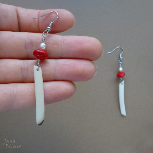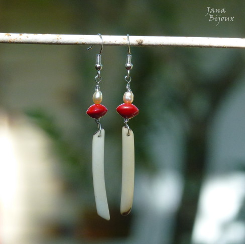 Lehounké náušnice s přírodními taguá tyčkami, červeným také přírodním semínkem a mini sladkovodními perlami. Barvu perel bych nazvala růžové capucino :-), na fotkách to není tak dobře vidět. Délka je 6,9 cm.