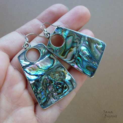 Aç199 05/07/2013VENDIDOS ( Prodáno)Jana Bijoux Brincos grandes, compridos 6 cm de alpaca, com abalone, aço cirúrgico R$ 29,00 ALPAKA, CH. OCEL A PAUA.