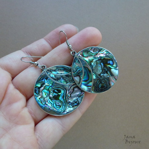 Brincos compridos 5,3 cm de alpaca, com abalone, aço cirúrgico R$ 29,00