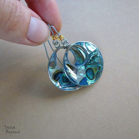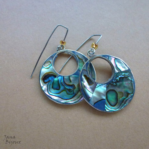 Aç230 30/01/2014VENDIDOS ( Prodáno)Jana Bijoux Brincos compridos 5 cm de alpaca e abalone, fecho moderno de aço inox antialérgico R$ 28,00