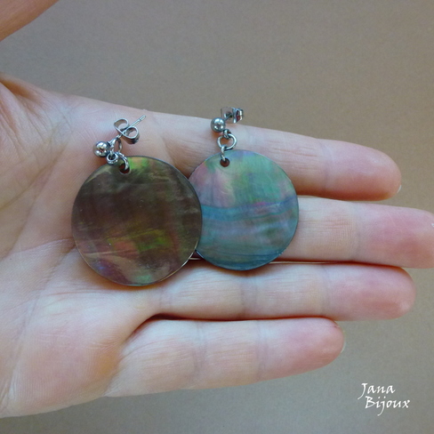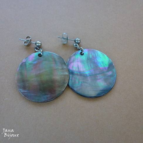 Aç257 26/08/2014VENDIDOS ( Prodáno)Jana Bijoux Brincos de inox e margaritifera-madrepérola, comprimento 4 cm. R$ 15,00