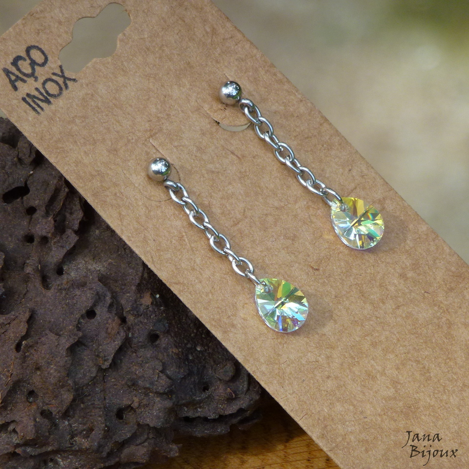 Brincos delicados de 3,3 cm, todo feito de aço inox E com cristais SWAROVSKI - furta cor. R$ 26,00