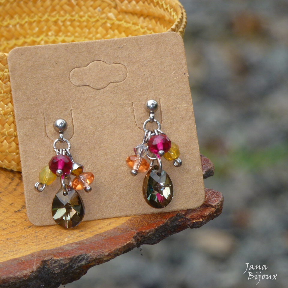 Brincos de 3 cm de aço inox com lindo cristal Swarovski IRIDESCENT GREEN (verde fumê furta-cor) e vidros coloridos R$ 29,00