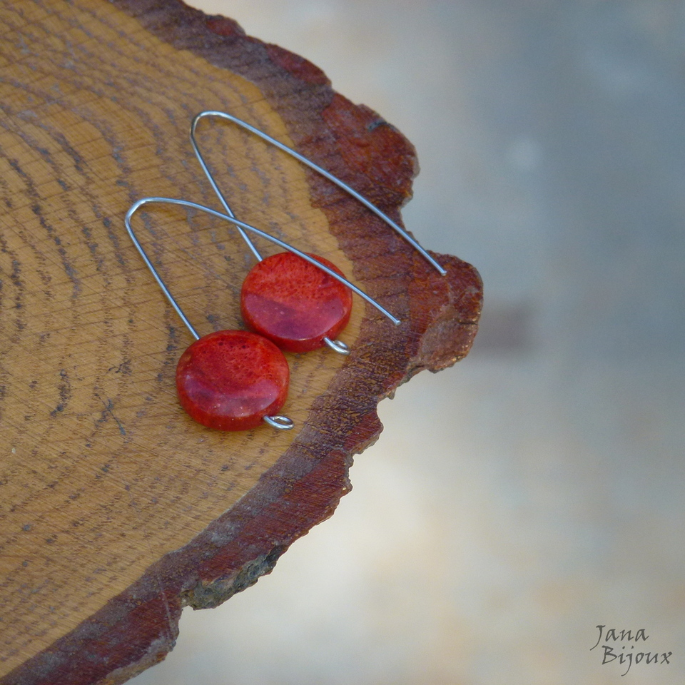 Aç367 07/09/2017VENDIDOS ( Prodáno)Jana Bijoux Brincos modernos, feitos a mão de aço inox com coral de 4 cm R$ 16,00