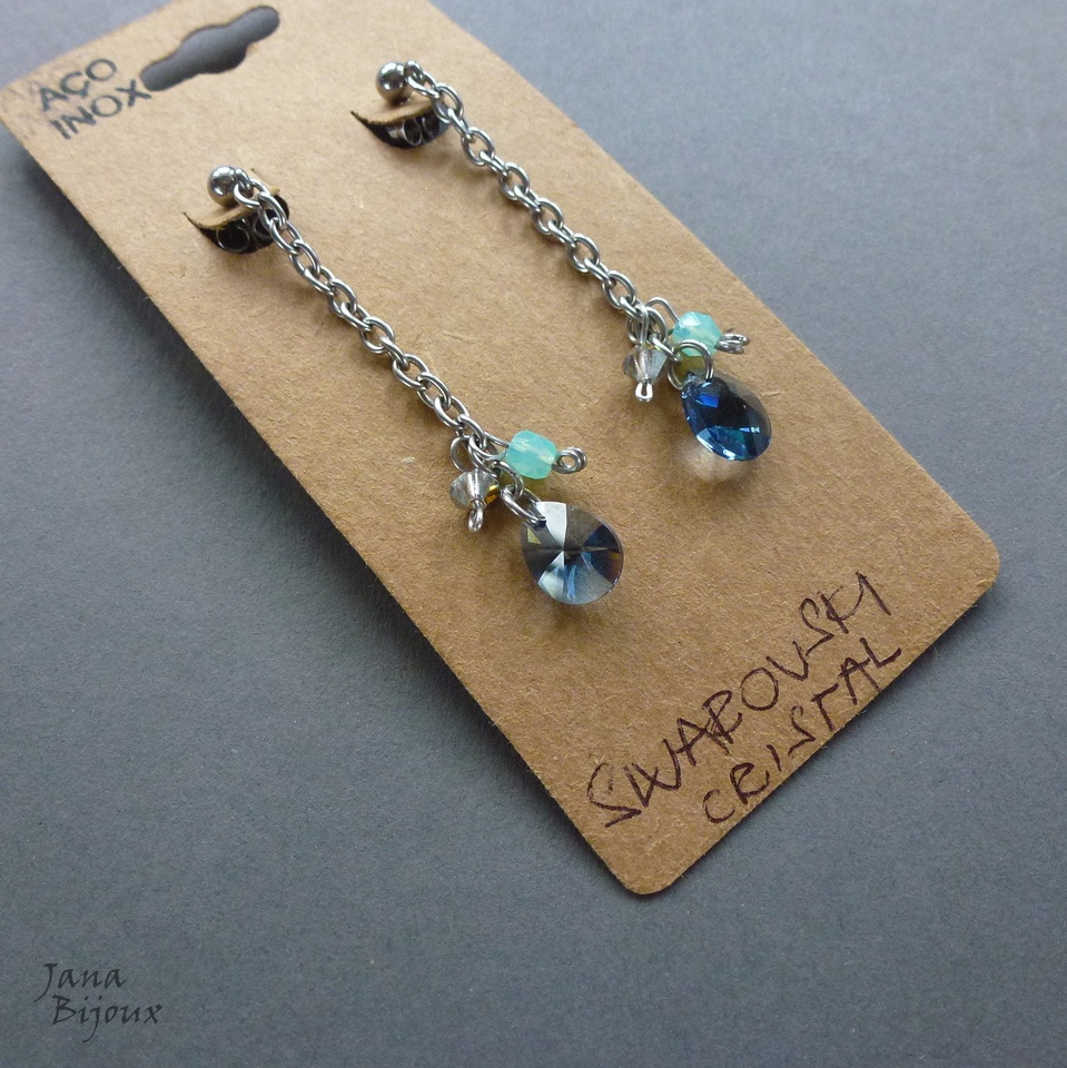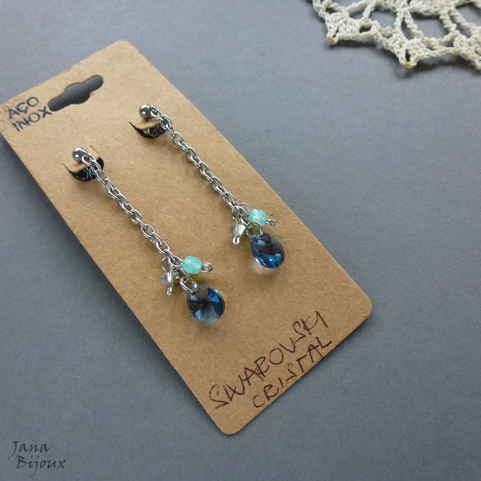 Aç375 03/10/2017VENDIDOS ( Prodáno)Jana Bijoux Brincos delicados de 5,7 cm, super leves, todo feito de aço inox e com cristais SWAROVSKI - cor azul. R$ 26,00
