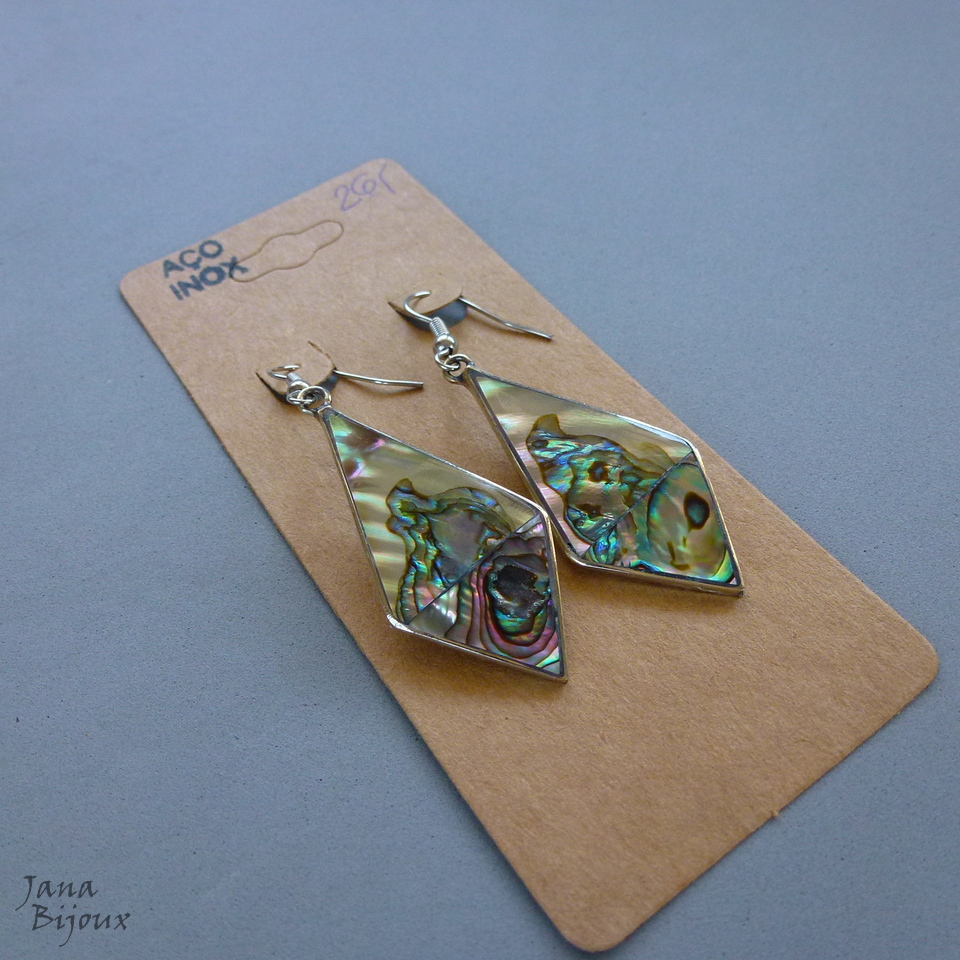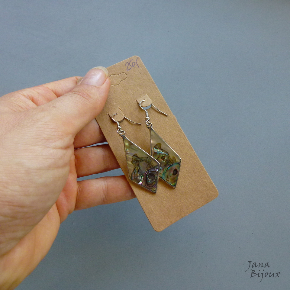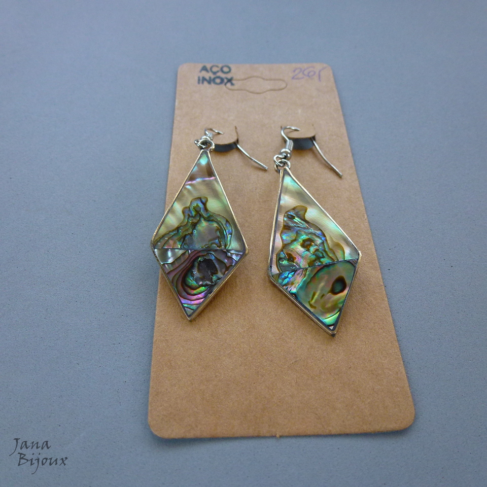 Aç385 16/11/2017VENDIDOS ( Prodáno)Jana Bijoux Brincos compridos 5,6 cm de alpaca com fecho de aço inox, abalone R$ 26,00.