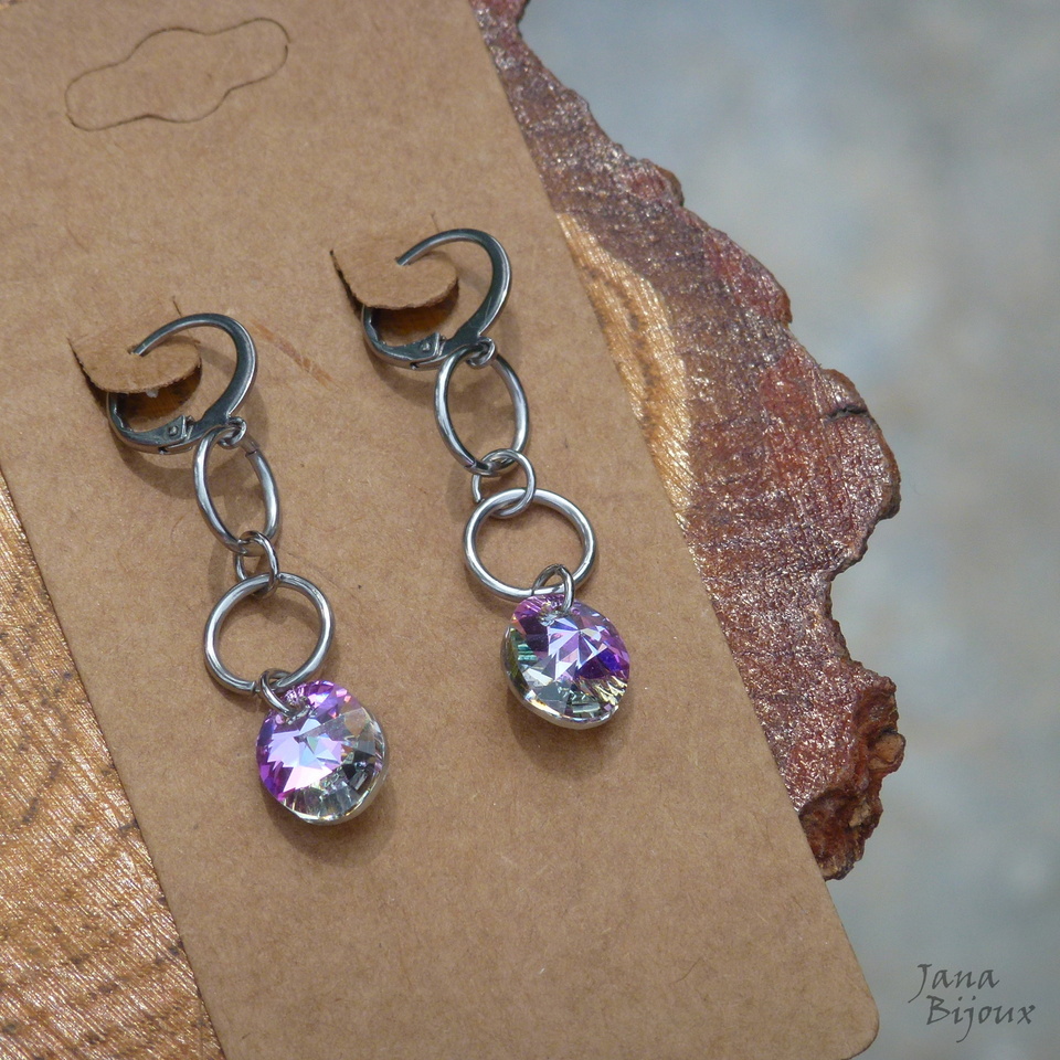 Brincos leves, com aço inox, moderno, com lindos ovais de Swarovski cristais.. VL 12 mm.