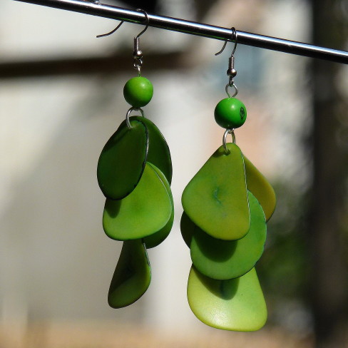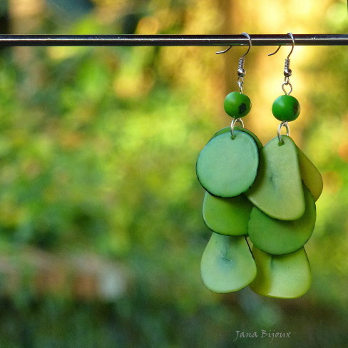 aç65 04/09/2011VENDIDOS ( Prodáno)Jana Bijoux Lehoučké náušnice z barvených plátků taguá ořechů a semínkem. Náušnice jsou na kvalitních postříbřených kovodílech a se zavíráním z chirurgické ocele.