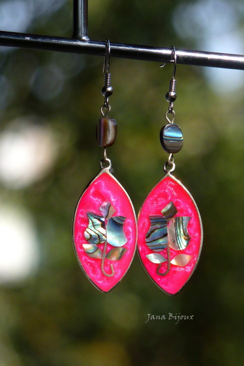 Aç67 18/09/2011VENDIDOS ( Prodáno)Jana Bijoux Brincos com flores de abalone, oval de abalone, comprimento 6,8 cm com fecho de aço cirúrgico R$ 20,00. PAUA MUŠLE A CHIRURGICKÁ OCEL.