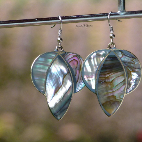 Brincos de alpaca com abalone e fecho de aço cirúrgico. Comprimento 5,7 cm e largura  3,5cm R$ 25,00. Tenho muitos outras formas e tamhos desta coleção de abalone.
