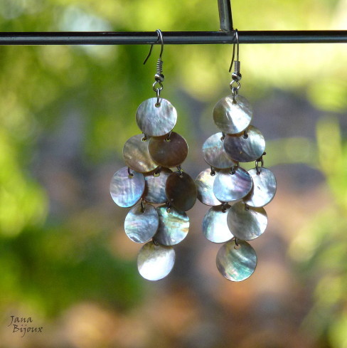 Super leves e super chiques, brincos de conchas (cada uma tem1,3 cm) R$ 17,00. Comprimento total é 7,5 cm